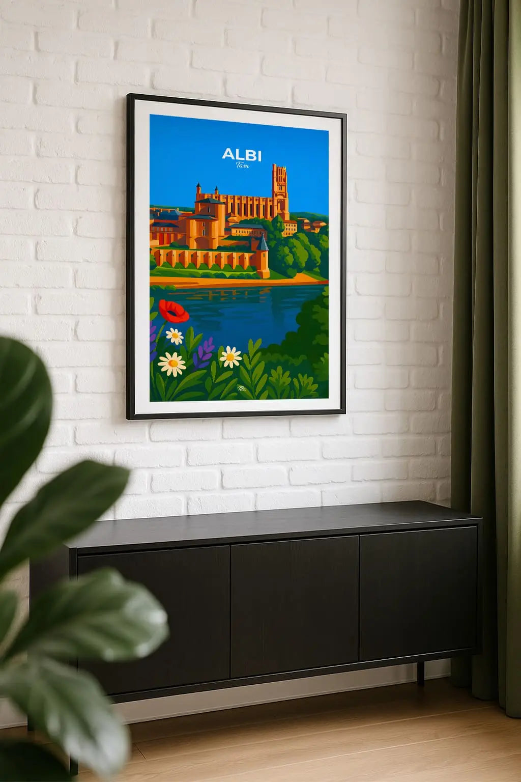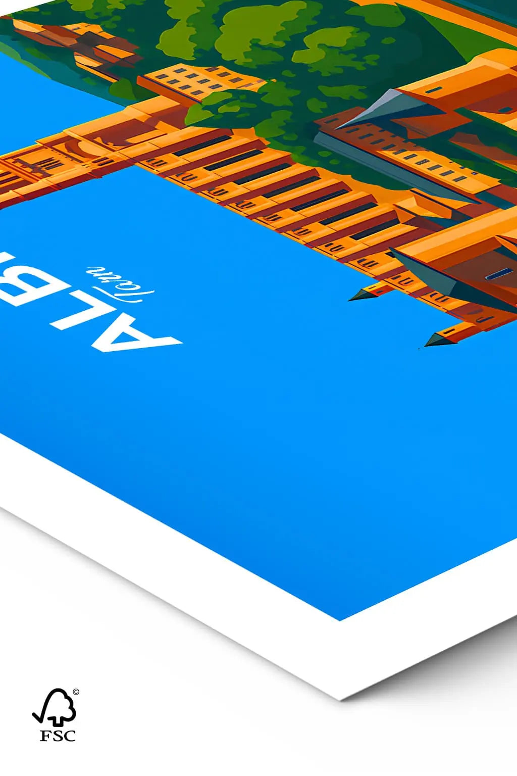 Albi, joyau du Tarn, s’élève fièrement au-dessus du Tarn avec sa majestueuse cathédrale de brique et son pont pittoresque. Entre lumière dorée, ruelles médiévales et douceur occitane, la ville respire art, histoire et élégance au cœur du Sud-Ouest. Accrochée sur un mur, cette affiche insuffle une bouffée d’évasion et de souvenirs. Offrez-vous un fragment de ce lieu, ou partagez-le en cadeau à une personne qui porte cet endroit dans son cœur.