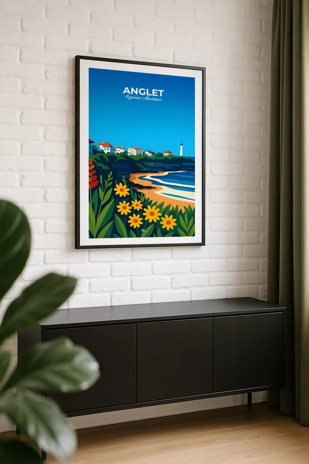 Anglet, perle de la côte basque, s’étire entre plages dorées et forêts parfumées. Entre vagues de l’Atlantique, lumière éclatante et ambiance détendue, la ville respire liberté, élégance et douceur de vivre au rythme du surf et de la mer. Accrochée sur un mur, cette affiche insuffle une bouffée d’évasion et de souvenirs. Offrez-vous un fragment de ce lieu, ou partagez-le en cadeau à une personne qui porte cet endroit dans son cœur.