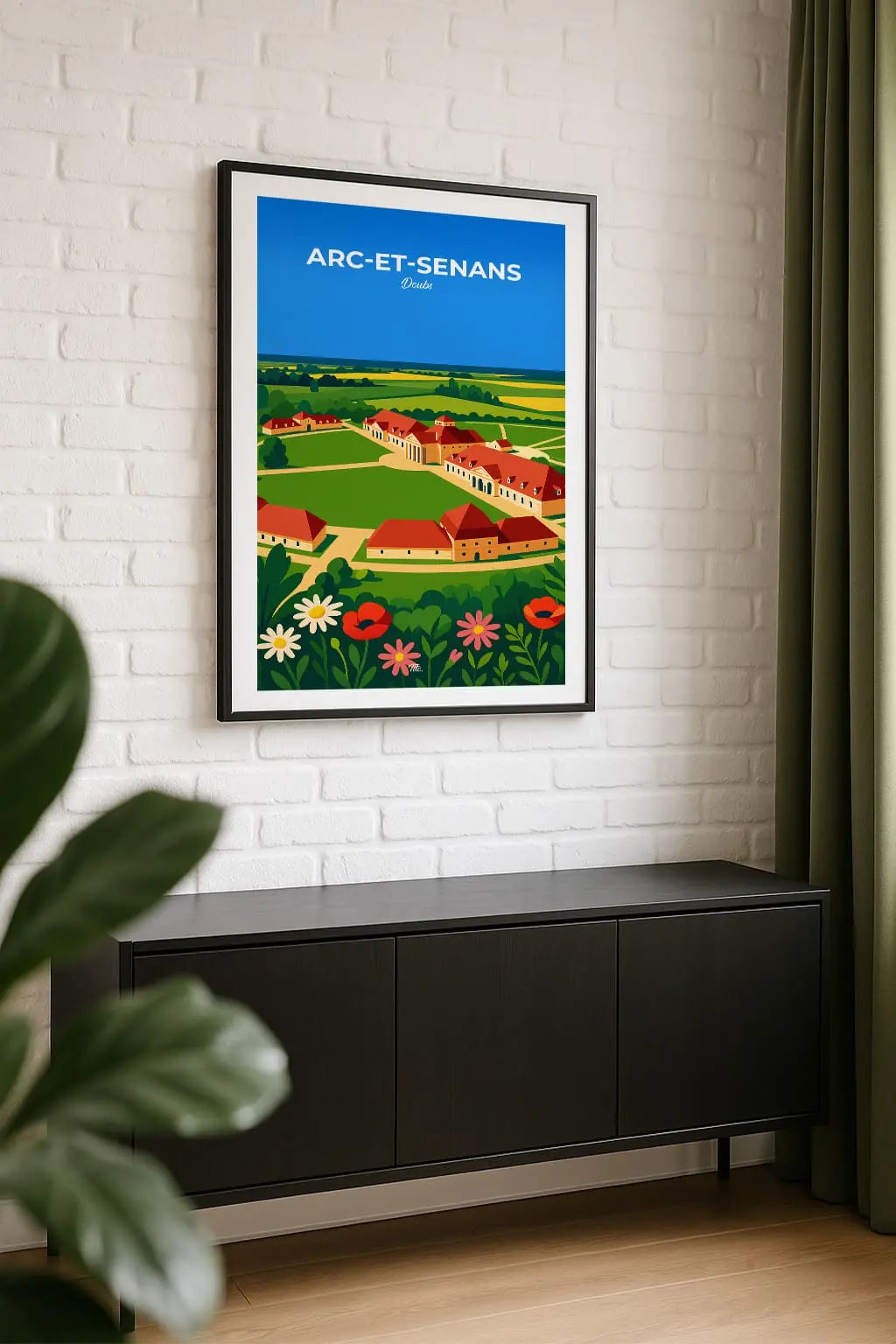 Arc-et-Senans, paisible cité du Doubs, rayonne autour de la Saline royale, chef-d’œuvre visionnaire de Ledoux. Entre patrimoine classé et paysages verdoyants, le village respire l’harmonie, l’histoire et la sérénité, offrant un voyage entre nature, art et utopie architecturale. Accrochée sur un mur, cette affiche insuffle une bouffée d’évasion et de souvenirs. Offrez-vous un fragment de ce lieu, ou partagez-le en cadeau à une personne qui porte cet endroit dans son cœur.