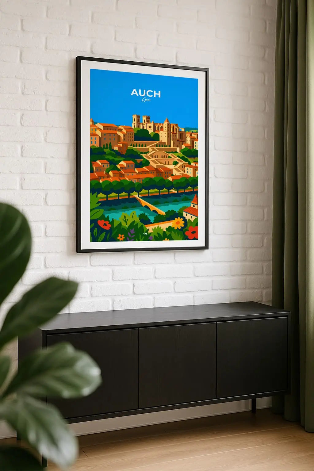 Auch, capitale du Gers, domine la vallée depuis son belvédère et sa majestueuse cathédrale. Entre ruelles pavées, escaliers monumentaux et douceur gasconne, la ville respire histoire, sérénité et art de vivre au cœur lumineux du Sud-Ouest. Accrochée sur un mur, cette affiche insuffle une bouffée d’évasion et de souvenirs. Offrez-vous un fragment de ce lieu, ou partagez-le en cadeau à une personne qui porte cet endroit dans son cœur.