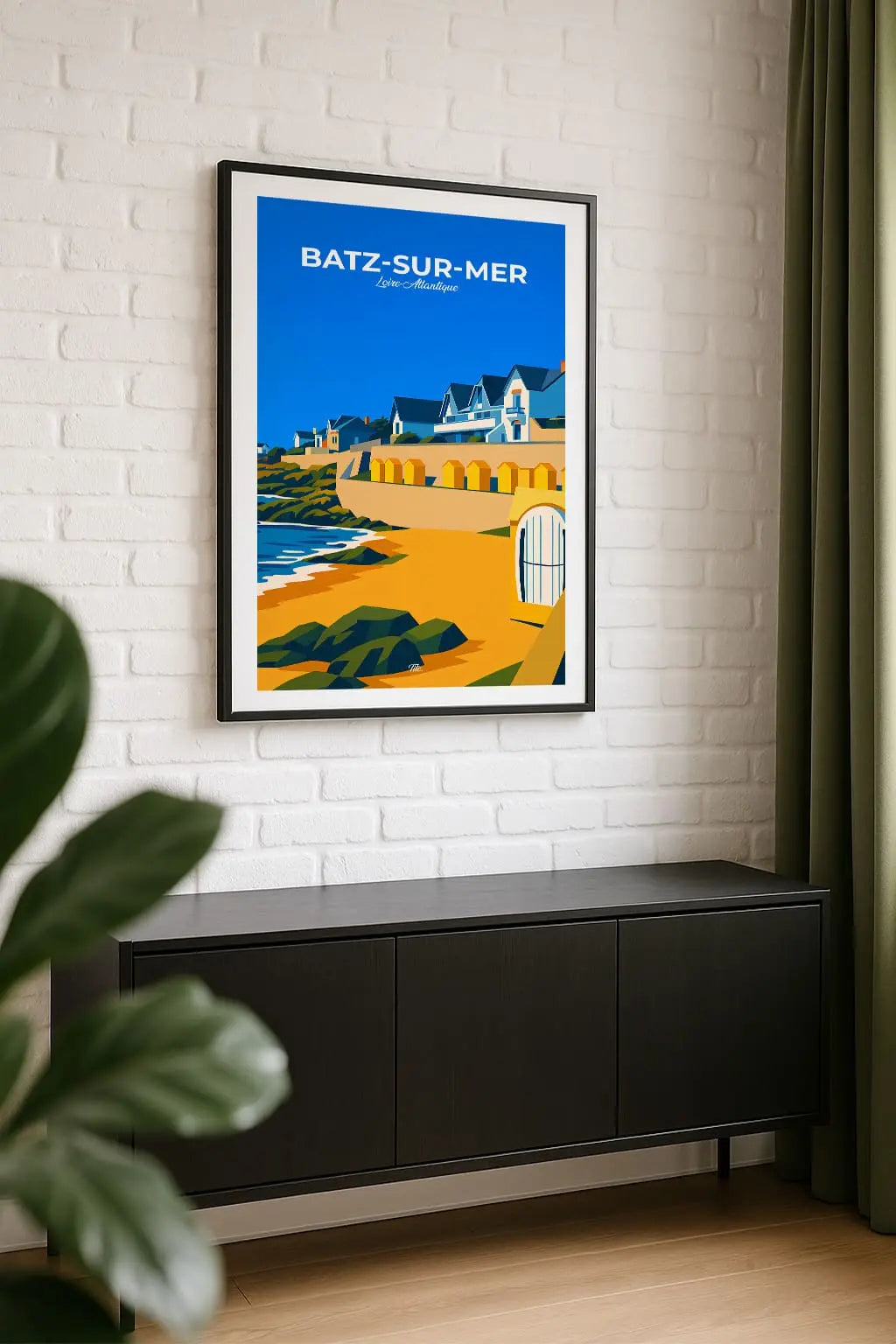 Batz-sur-Mer, charmant village breton, s’étire entre plages sauvages, dunes et marais salants. Entre ruelles pittoresques, lumière changeante et atmosphère paisible, la commune respire authenticité, beauté naturelle et douceur de vivre face à l’océan Atlantique. Accrochée sur un mur, cette affiche insuffle une bouffée d’évasion et de souvenirs. Offrez-vous un fragment de ce lieu, ou partagez-le en cadeau à une personne qui porte cet endroit dans son cœur.