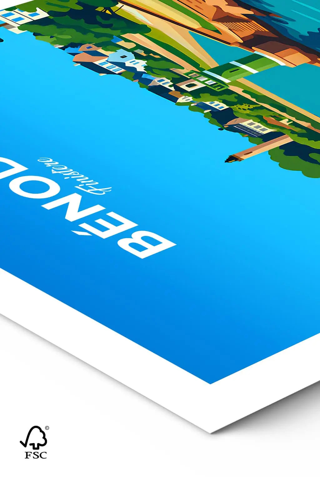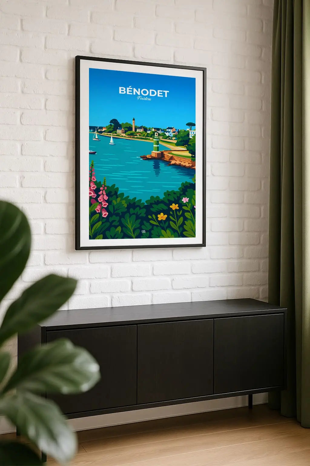 Bénodet, joyau de la côte bretonne, séduit par ses plages dorées, son port animé et ses falaises sauvages. Entre lumière changeante, brise marine et atmosphère paisible, la ville respire charme, authenticité et douceur de vivre océane. Accrochée sur un mur, cette affiche insuffle une bouffée d’évasion et de souvenirs. Offrez-vous un fragment de ce lieu, ou partagez-le en cadeau à une personne qui porte cet endroit dans son cœur.