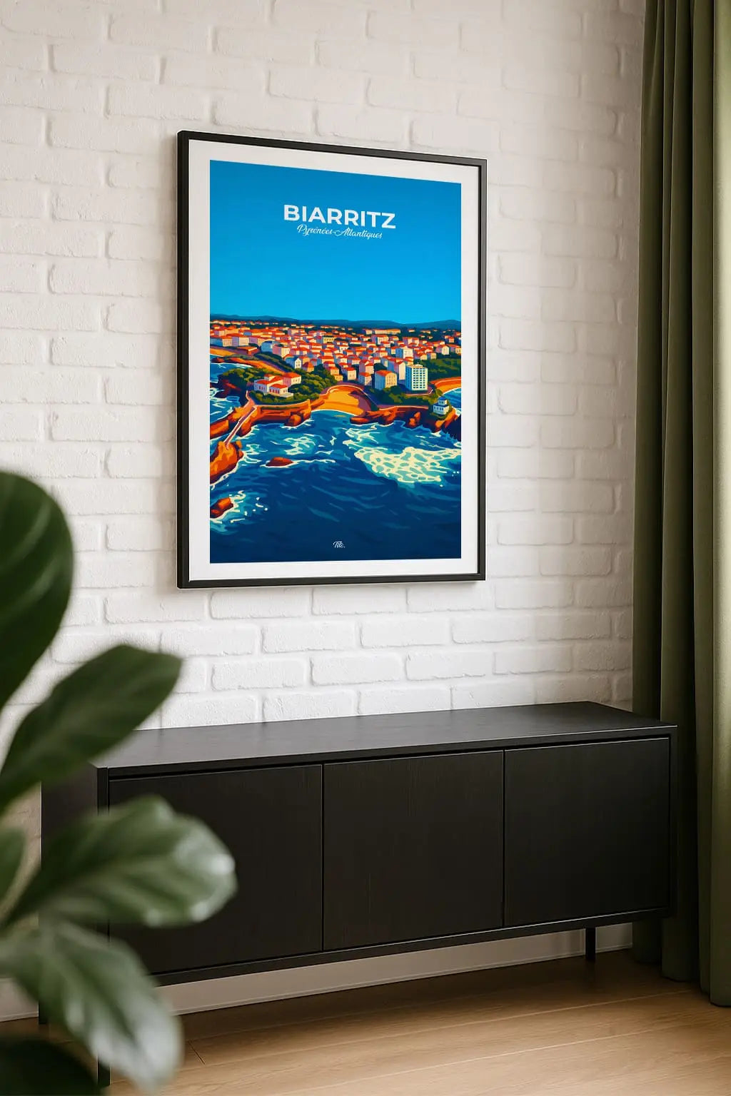 Biarritz, perle de la côte basque, séduit par ses plages majestueuses, ses vagues légendaires et son élégance balnéaire. Entre lumière éclatante, architectures raffinées et ambiance vivante, la ville respire glamour, liberté et douceur de vivre océane. Accrochée sur un mur, cette affiche insuffle une bouffée d’évasion et de souvenirs. Offrez-vous un fragment de ce lieu, ou partagez-le en cadeau à une personne qui porte cet endroit dans son cœur.