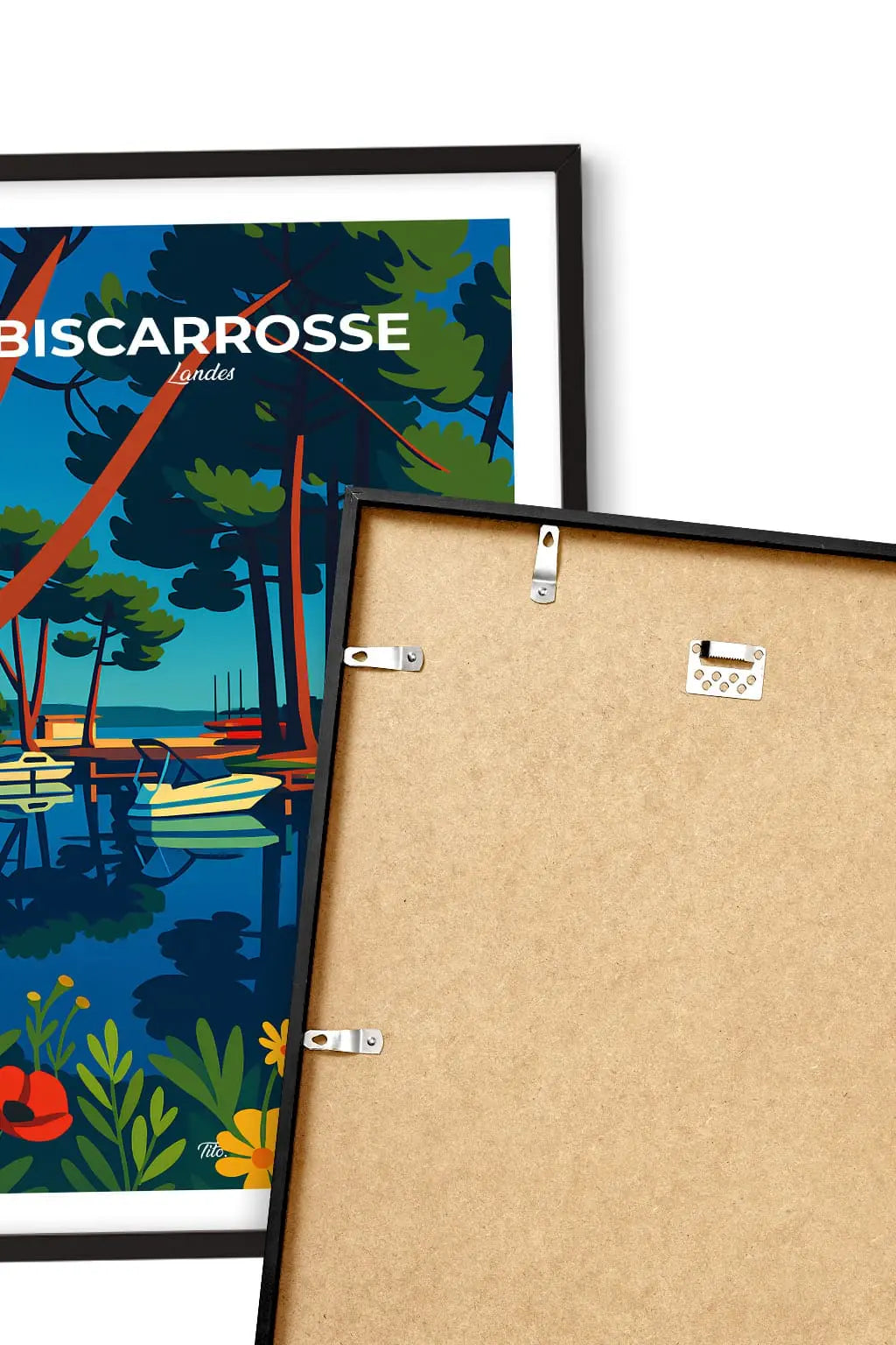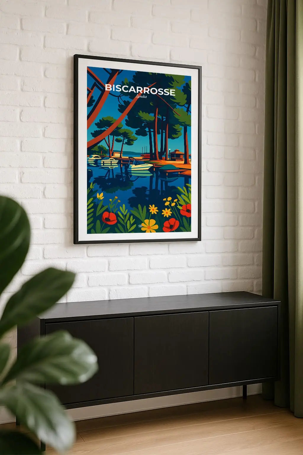 Biscarrosse, joyau de la côte landaise, s’étend entre l’océan Atlantique, lacs et forêts de pins. Entre plages dorées, dunes sauvages et atmosphère conviviale, la ville respire nature, liberté et douceur de vivre au rythme des vagues et du vent marin. Accrochée sur un mur, cette affiche insuffle une bouffée d’évasion et de souvenirs. Offrez-vous un fragment de ce lieu, ou partagez-le en cadeau à une personne qui porte cet endroit dans son cœur.