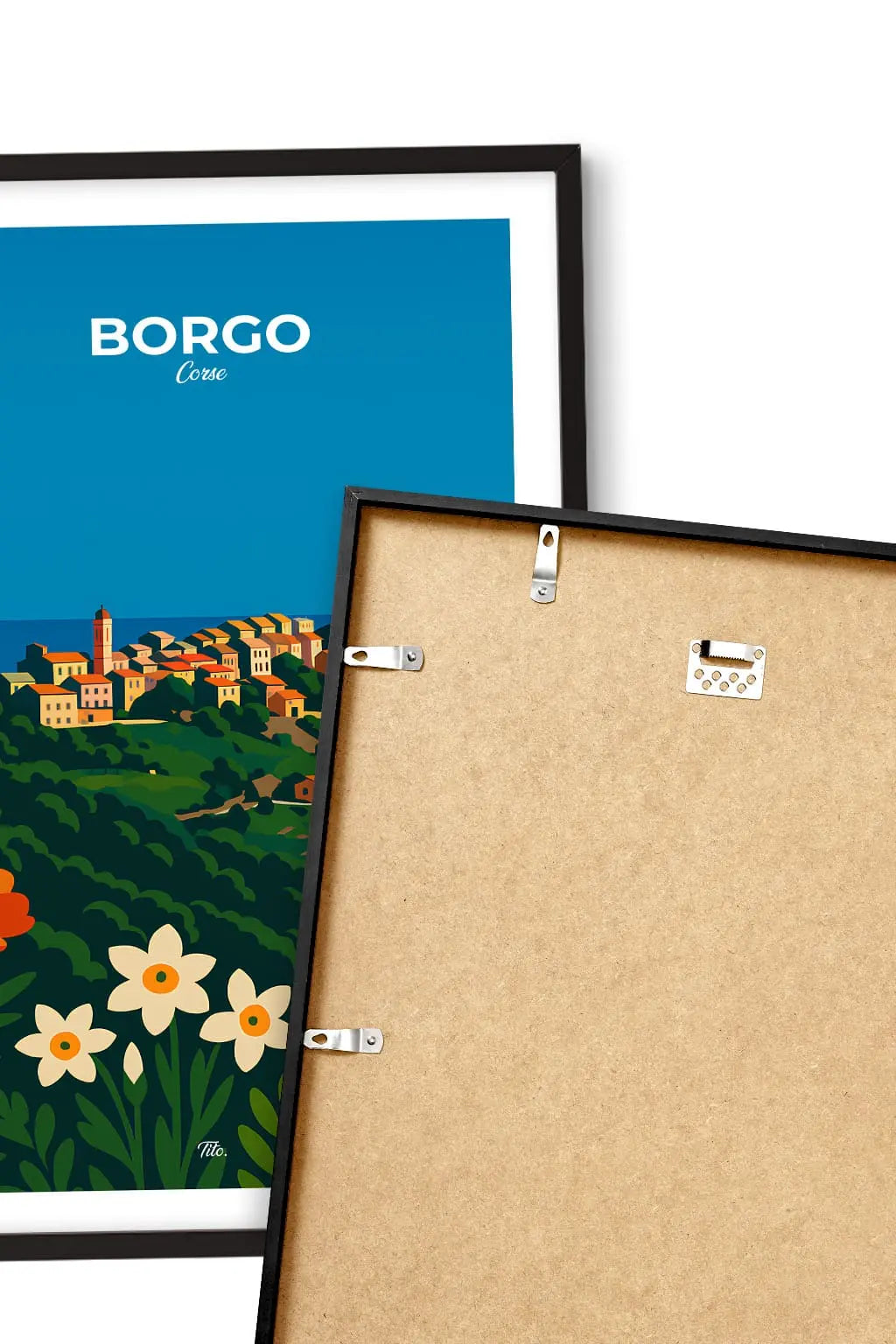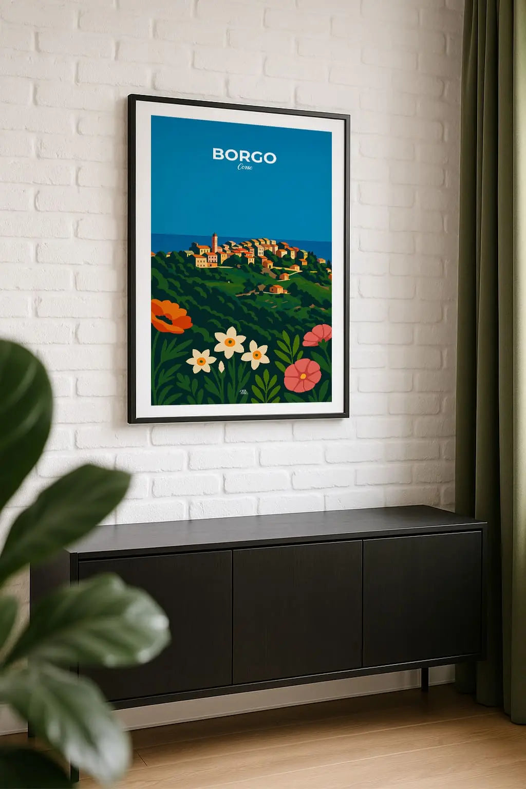 Borgo, paisible bourg corse entre mer et montagne, offre une vue saisissante sur la plaine et le bleu infini du littoral. Son âme authentique se dévoile dans la quiétude de ses ruelles et la douceur de ses paysages, où la nature et la tradition s’unissent en harmonie. Accrochée sur un mur, cette affiche insuffle une bouffée d’évasion et de souvenirs. Offrez-vous un fragment de ce lieu, ou partagez-le en cadeau à une personne qui porte cet endroit dans son cœur.