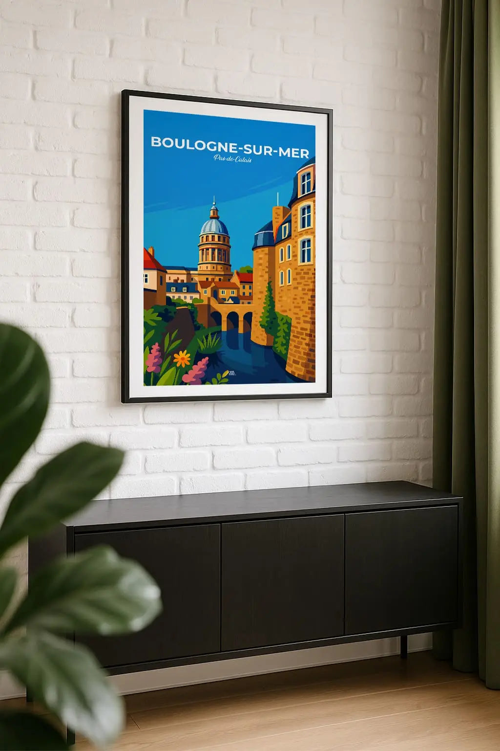 Boulogne-sur-Mer, joyau de la Côte d’Opale, s’élève entre falaises, plages et port animé. Entre ruelles médiévales, patrimoine maritime et atmosphère vivante, la ville respire histoire, authenticité et beauté côtière, offrant un cadre unique où mer et culture se rencontrent. Accrochée sur un mur, cette affiche insuffle une bouffée d’évasion et de souvenirs. Offrez-vous un fragment de ce lieu, ou partagez-le en cadeau à une personne qui porte cet endroit dans son cœur.