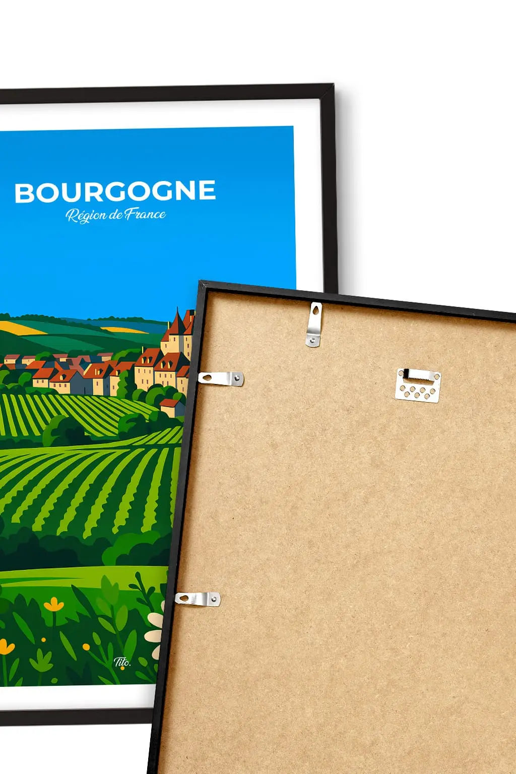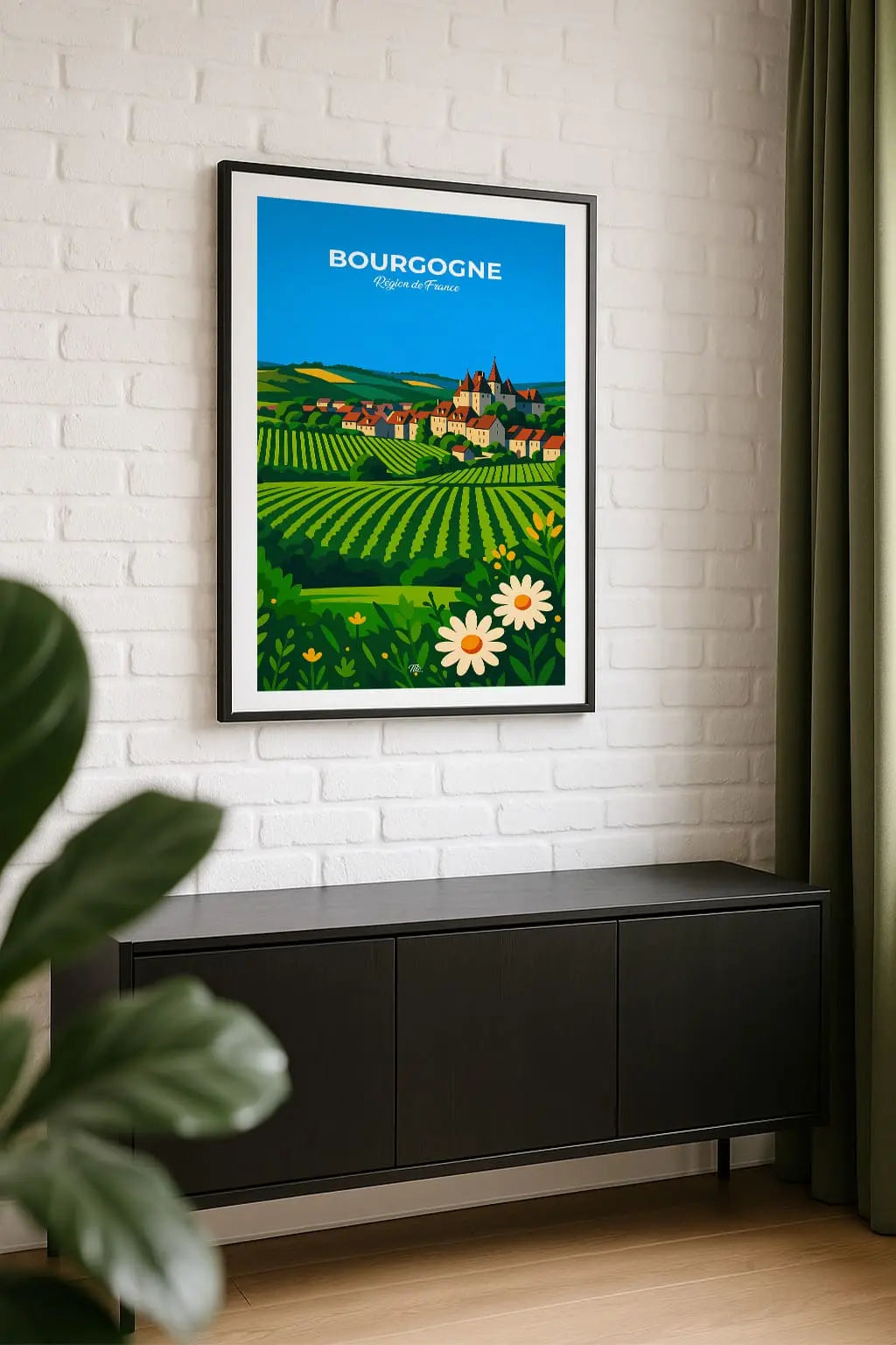 La Bourgogne, terre de saveurs et de lumière, déploie ses collines dorées, ses vignobles prestigieux et ses villages empreints d’histoire. Entre abbayes, châteaux et gastronomie raffinée, la région célèbre l’art de vivre à la française, authentique, généreux et intemporel. Accrochée sur un mur, cette affiche insuffle une bouffée d’évasion et de souvenirs. Offrez-vous un fragment de ce lieu, ou partagez-le en cadeau à une personne qui porte cet endroit dans son cœur.