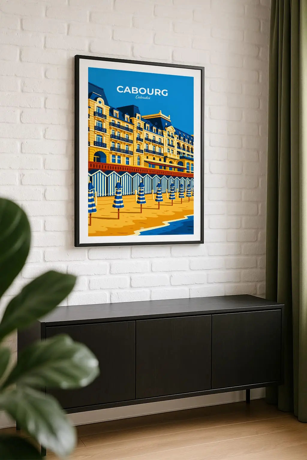 Cabourg, perle romantique de la Côte Fleurie, séduit par sa promenade en bord de mer, ses villas Belle Époque et son atmosphère intemporelle. Entre sable doré, lumière douce et élégance balnéaire, la ville respire charme, raffinement et douceur de vivre. Accrochée sur un mur, cette affiche insuffle une bouffée d’évasion et de souvenirs. Offrez-vous un fragment de ce lieu, ou partagez-le en cadeau à une personne qui porte cet endroit dans son cœur.