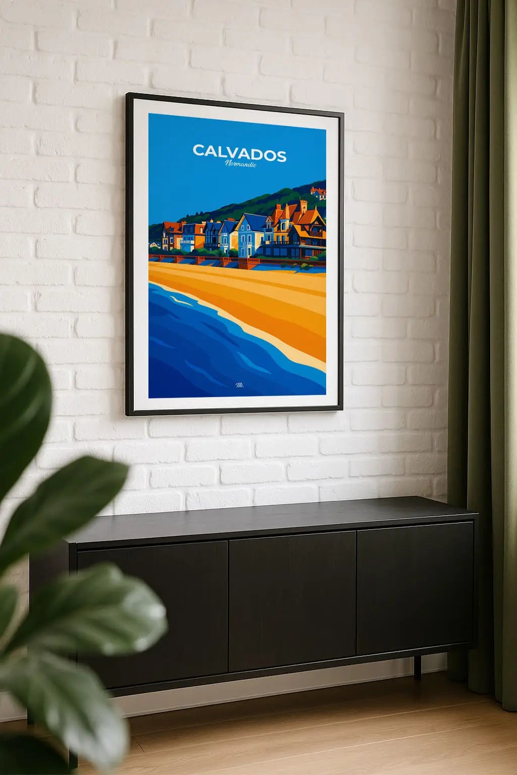 Le Calvados, terre d’histoire et de paysages doux, déploie bocages, falaises et plages infinies. Entre villages fleuris, vergers de pommiers et senteurs marines, le département respire authenticité, patrimoine et douceur de vivre normande. Accrochée sur un mur, cette affiche insuffle une bouffée d’évasion et de souvenirs. Offrez-vous un fragment de ce lieu, ou partagez-le en cadeau à une personne qui porte cet endroit dans son cœur.