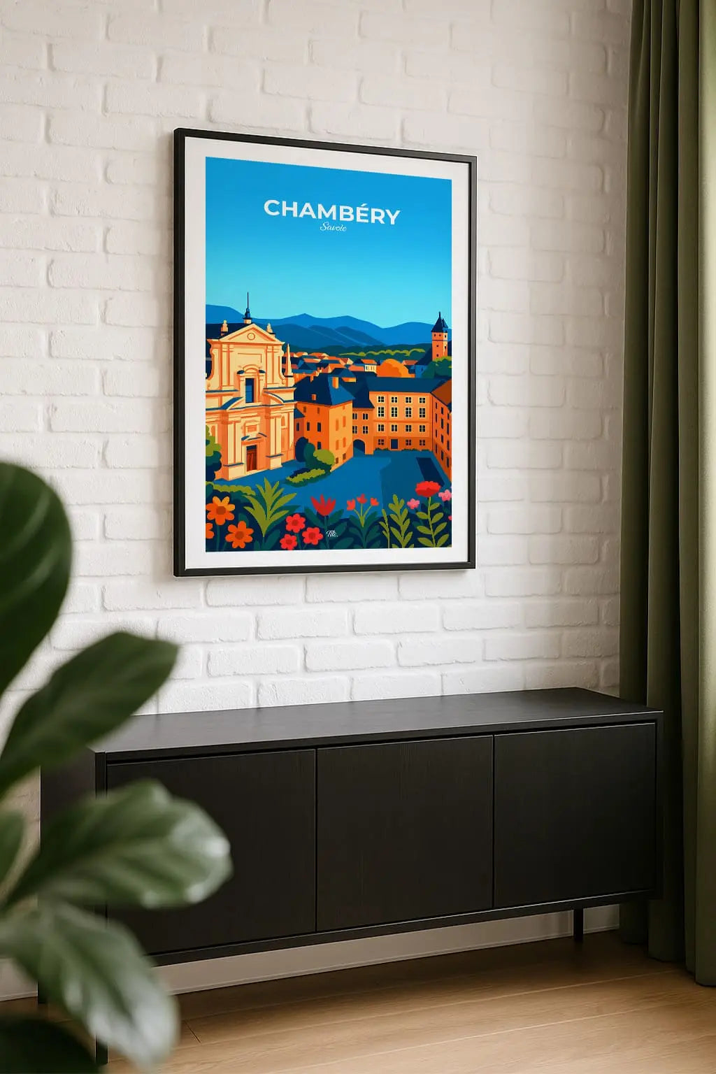 Chambéry, capitale historique de la Savoie, séduit par ses ruelles pittoresques, ses fontaines et son château médiéval. Entre patrimoine, montagnes environnantes et atmosphère chaleureuse, la ville respire élégance, authenticité et douceur de vivre alpine. Accrochée sur un mur, cette affiche insuffle une bouffée d’évasion et de souvenirs. Offrez-vous un fragment de ce lieu, ou partagez-le en cadeau à une personne qui porte cet endroit dans son cœur.