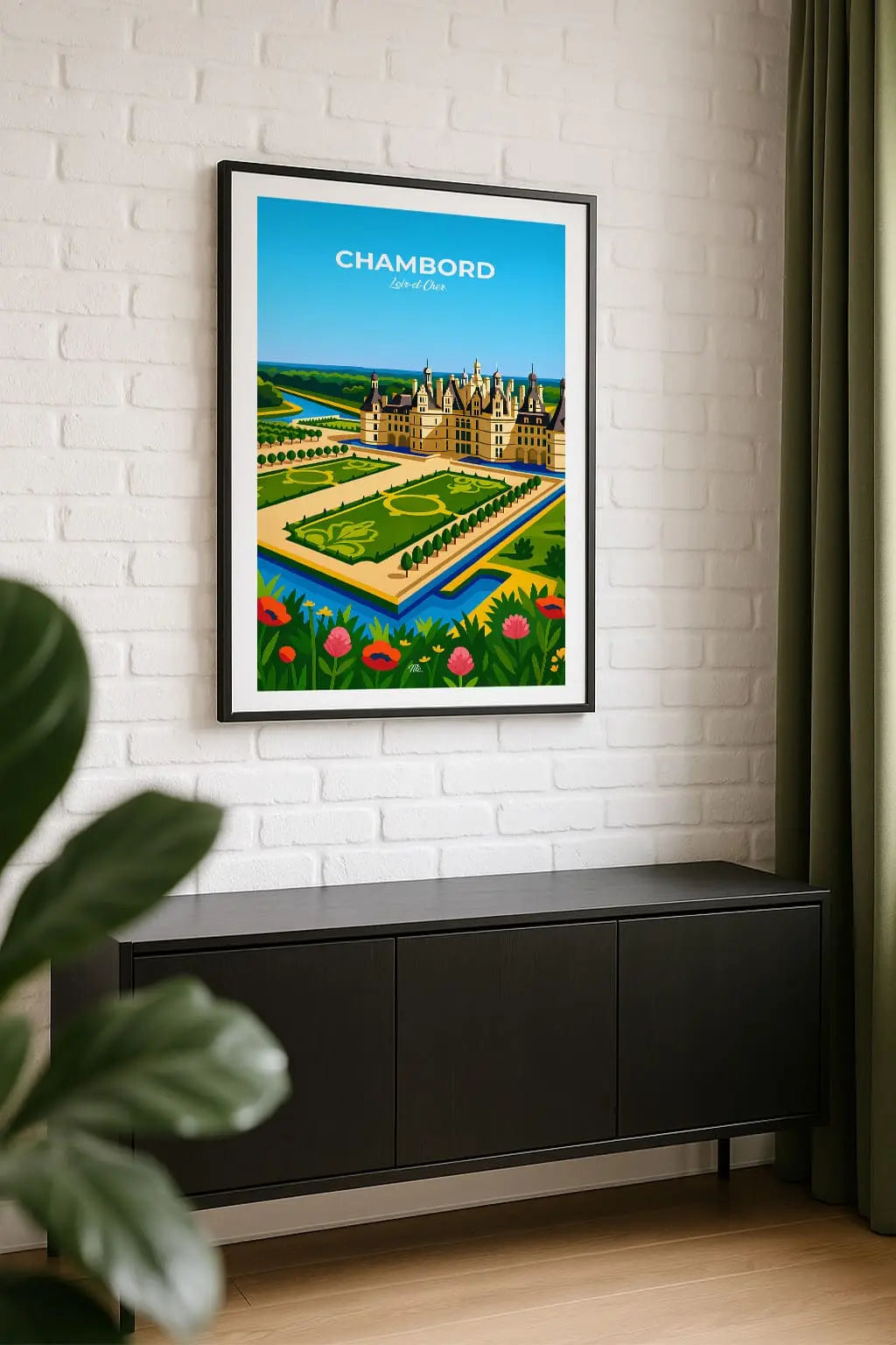 Chambord, chef-d’œuvre de la Renaissance, s’élève au cœur de la forêt tel un rêve de pierre et de symétrie. Ses tours, ses toits et son escalier à double révolution racontent la démesure des rois. Autour, la nature préservée enveloppe le château d’un souffle de majesté et d’éternité. Accrochée sur un mur, cette affiche insuffle une bouffée d’évasion et de souvenirs. Offrez-vous un fragment de ce lieu, ou partagez-le en cadeau à une personne qui porte cet endroit dans son cœur.