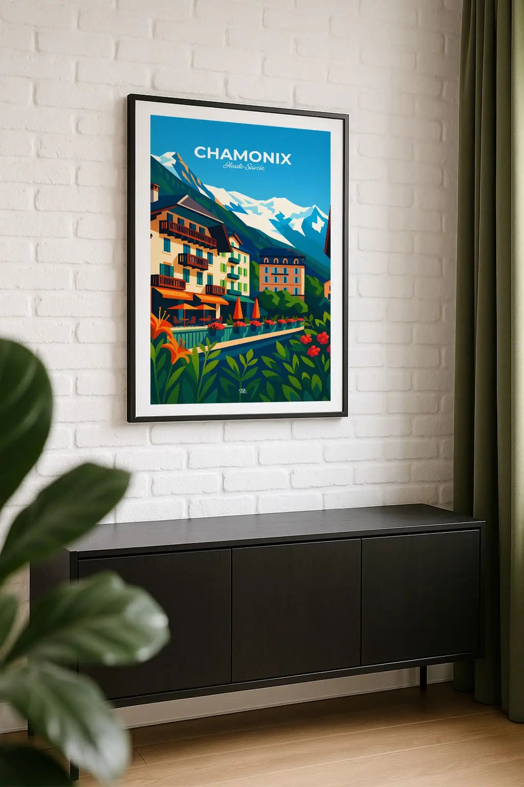 Chamonix, joyau des Alpes, s’épanouit au pied du Mont-Blanc avec ses glaciers et sommets vertigineux. Entre sports de montagne, ruelles animées et paysages grandioses, la ville respire aventure, beauté et sérénité dans un cadre alpin exceptionnel. Accrochée sur un mur, cette affiche insuffle une bouffée d’évasion et de souvenirs. Offrez-vous un fragment de ce lieu, ou partagez-le en cadeau à une personne qui porte cet endroit dans son cœur.