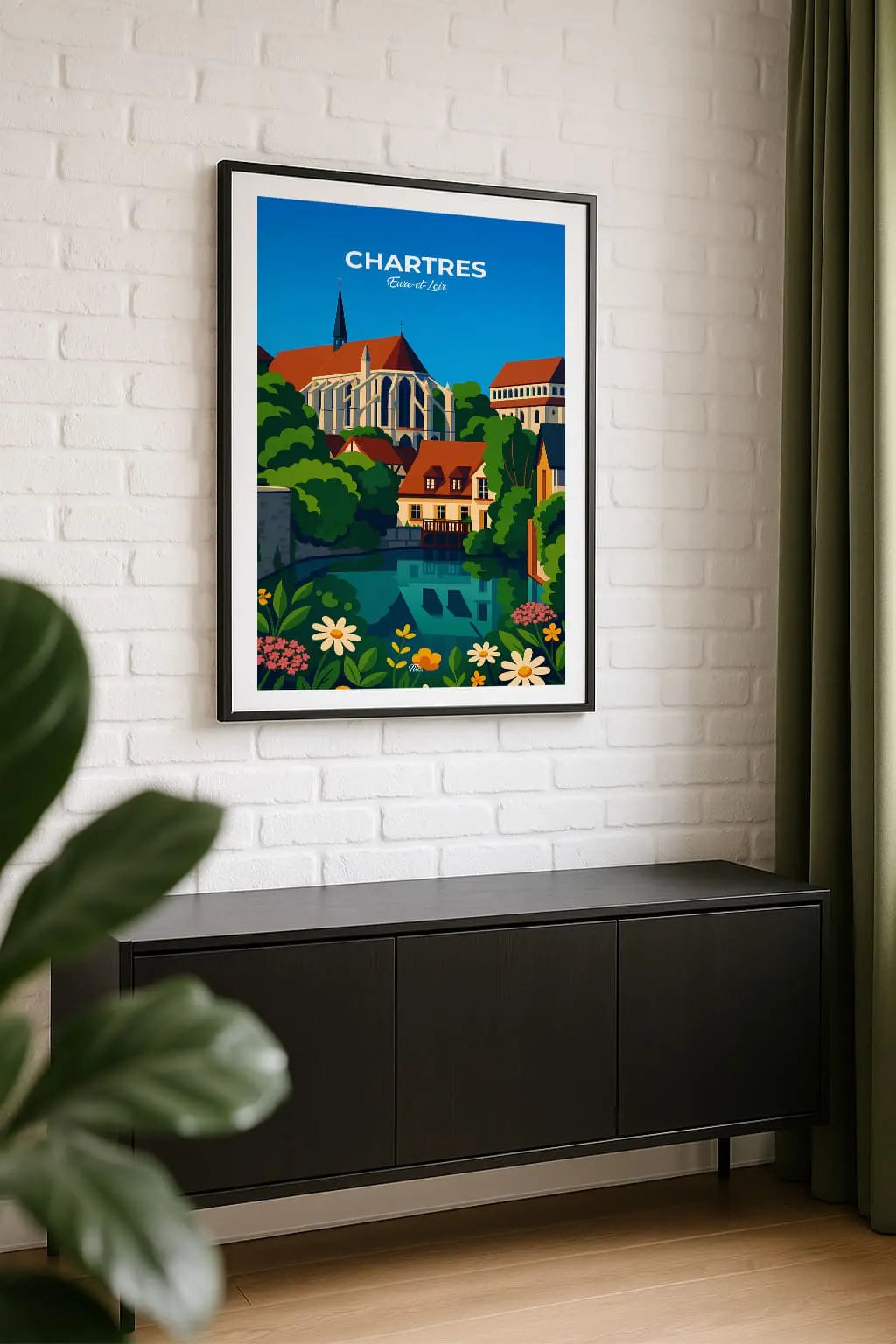 Chartres, joyau spirituel et artistique, s’illumine sous le regard de sa cathédrale aux vitraux bleus légendaires. Ses ruelles médiévales, son parfum d’histoire et la douceur de l’Eure en font une ville de lumière, de sérénité et d’émerveillement au cœur de la Beauce éternelle. Accrochée sur un mur, cette affiche insuffle une bouffée d’évasion et de souvenirs. Offrez-vous un fragment de ce lieu, ou partagez-le en cadeau à une personne qui porte cet endroit dans son cœur.