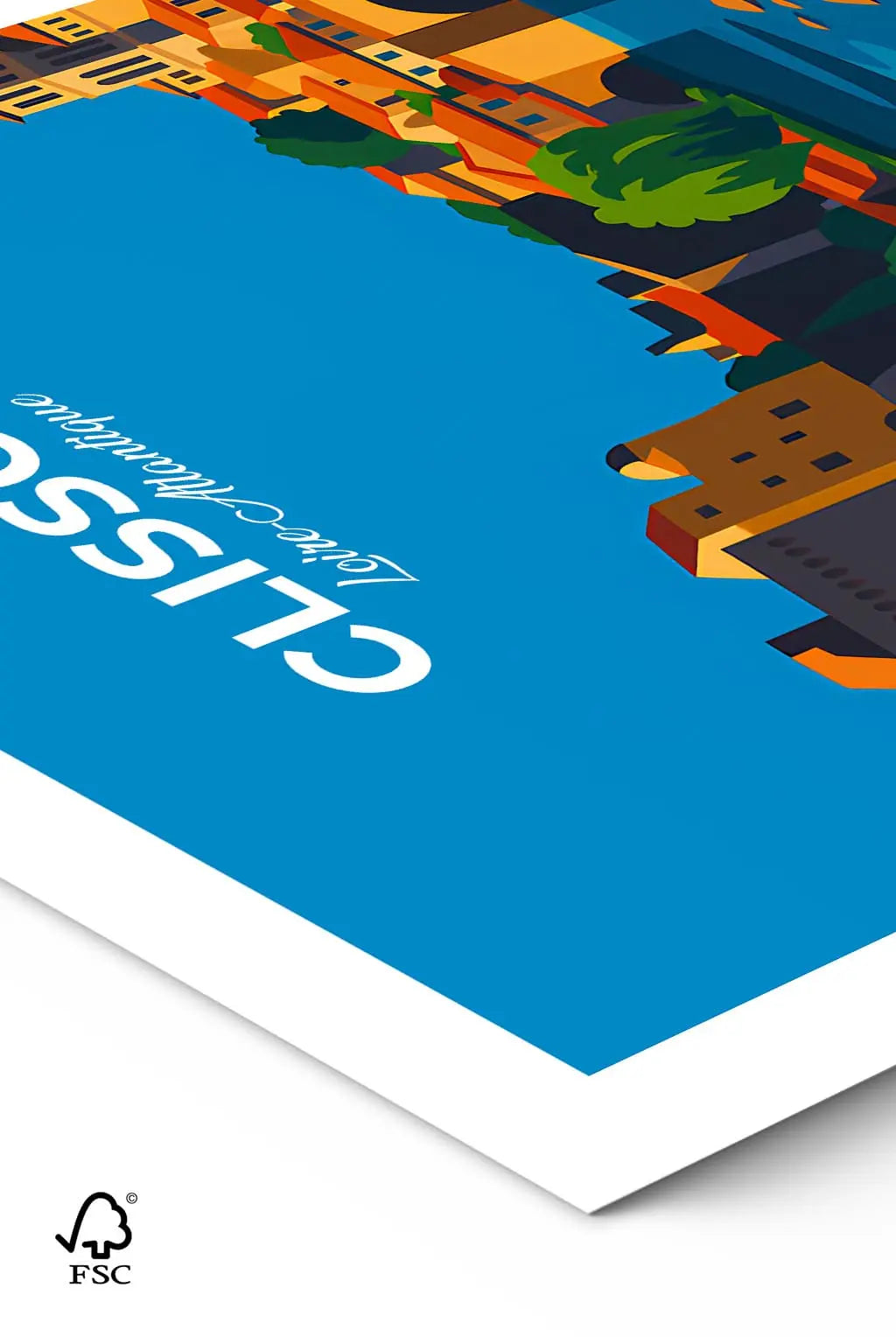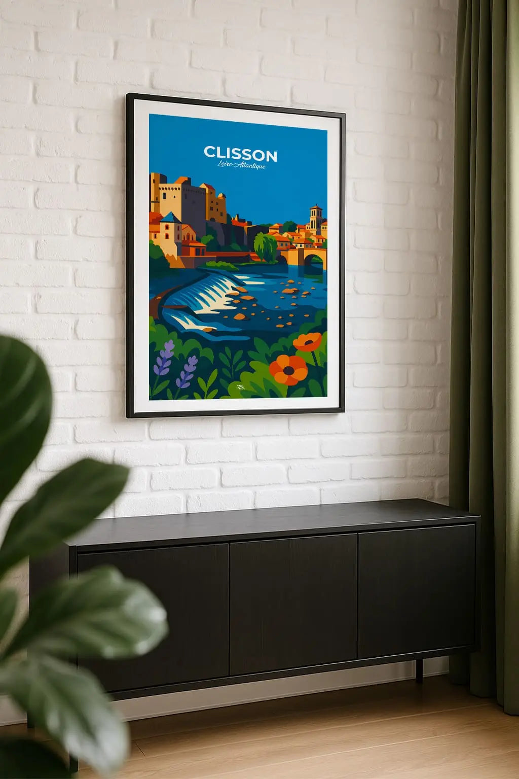 Clisson, village pittoresque de Loire-Atlantique, charme par ses ruines médiévales, ses maisons colorées et ses ponts sur la Sèvre nantaise. Entre jardins à l’italienne, vignobles et atmosphère romantique, la ville respire histoire, élégance et douceur de vivre. Accrochée sur un mur, cette affiche insuffle une bouffée d’évasion et de souvenirs. Offrez-vous un fragment de ce lieu, ou partagez-le en cadeau à une personne qui porte cet endroit dans son cœur.