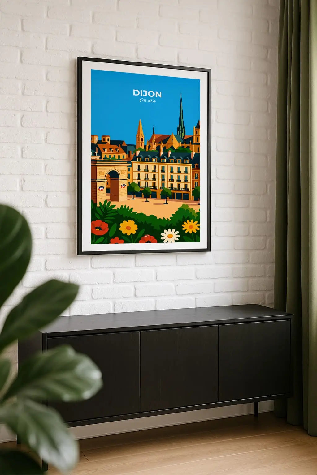 Dijon, capitale élégante de la Bourgogne, séduit par ses hôtels particuliers, ses toits vernissés et ses ruelles animées. Ville d’art et de gastronomie, elle marie histoire et modernité avec raffinement, offrant un savant mélange de culture, de saveurs et de douceur de vivre. Accrochée sur un mur, cette affiche insuffle une bouffée d’évasion et de souvenirs. Offrez-vous un fragment de ce lieu, ou partagez-le en cadeau à une personne qui porte cet endroit dans son cœur.