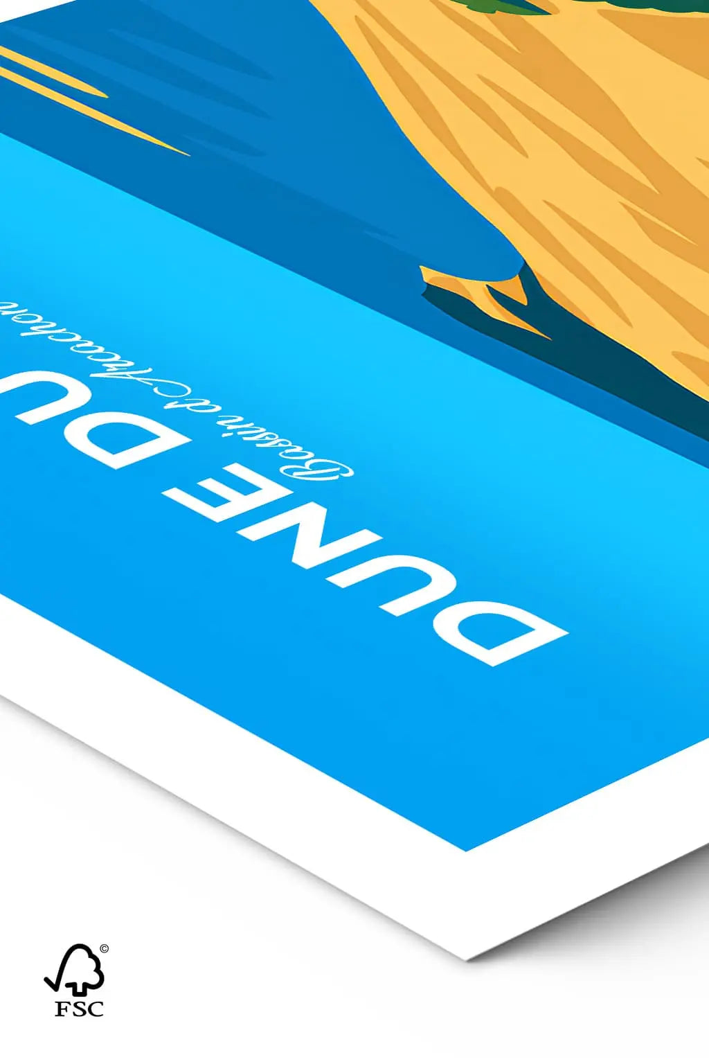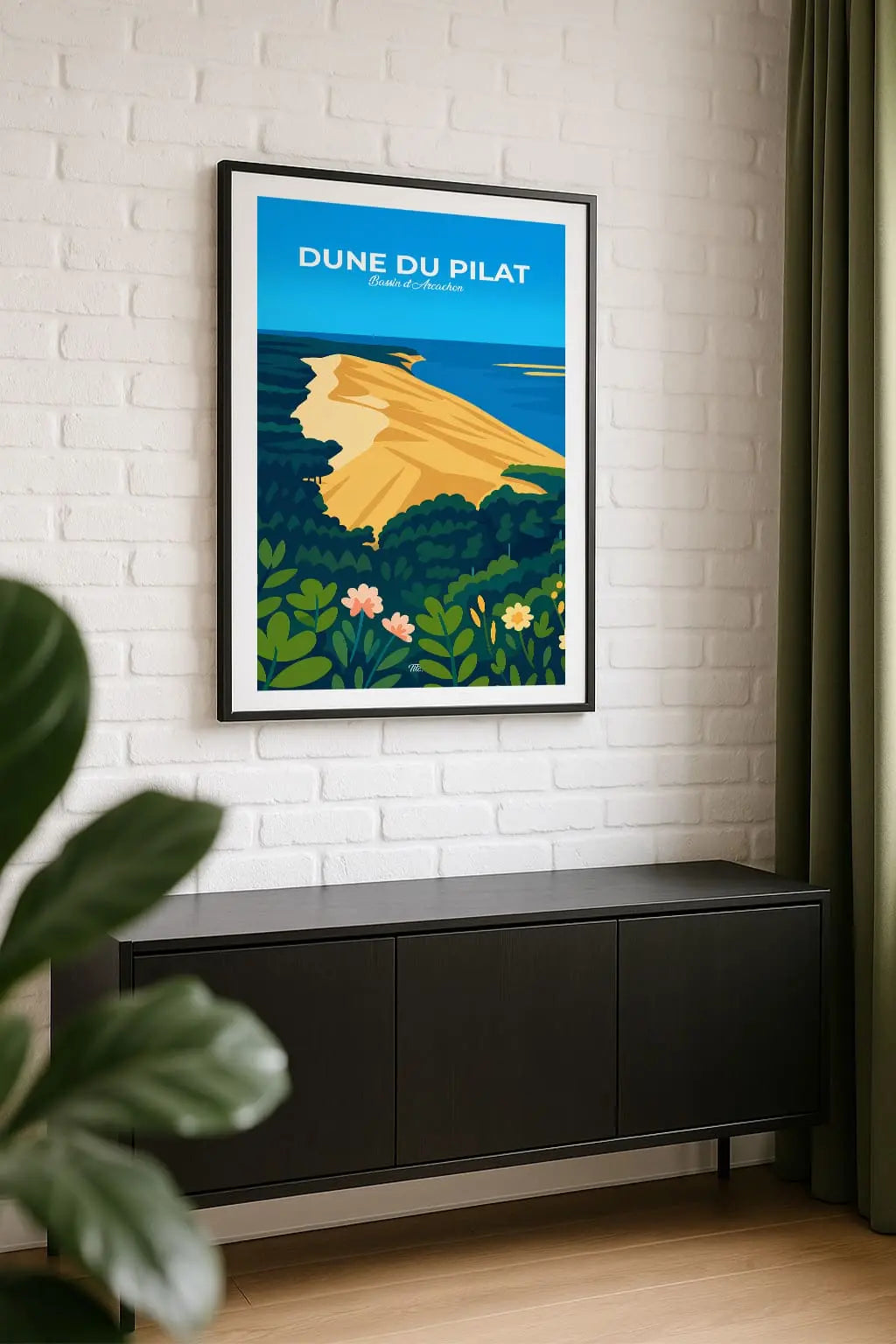 La Dune du Pilat, merveille naturelle de la côte Atlantique, s’élève majestueuse entre forêt et océan. Entre sable doré, lumière changeante et panoramas grandioses, elle respire beauté, liberté et émerveillement face à l’infini. Accrochée sur un mur, cette affiche insuffle une bouffée d’évasion et de souvenirs. Offrez-vous un fragment de ce lieu, ou partagez-le en cadeau à une personne qui porte cet endroit dans son cœur.