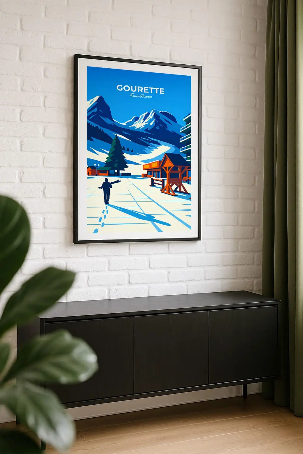 Gourette, station alpine béarnaise, s’épanouit au cœur des Pyrénées entre pistes enneigées et montagnes majestueuses. Entre chalets chaleureux, panoramas vertigineux et ambiance conviviale, elle respire aventure, sérénité et beauté alpine authentique. Accrochée sur un mur, cette affiche insuffle une bouffée d’évasion et de souvenirs. Offrez-vous un fragment de ce lieu, ou partagez-le en cadeau à une personne qui porte cet endroit dans son cœur.