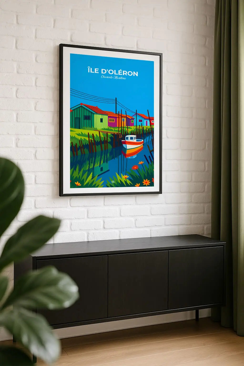 L’Île d’Oléron, joyau de l’Atlantique, séduit par ses plages dorées, ses forêts de pins et ses villages pittoresques. Entre lumière changeante, brise marine et atmosphère paisible, l’île respire nature, authenticité et douceur de vivre océane. Accrochée sur un mur, cette affiche insuffle une bouffée d’évasion et de souvenirs. Offrez-vous un fragment de ce lieu, ou partagez-le en cadeau à une personne qui porte cet endroit dans son cœur.