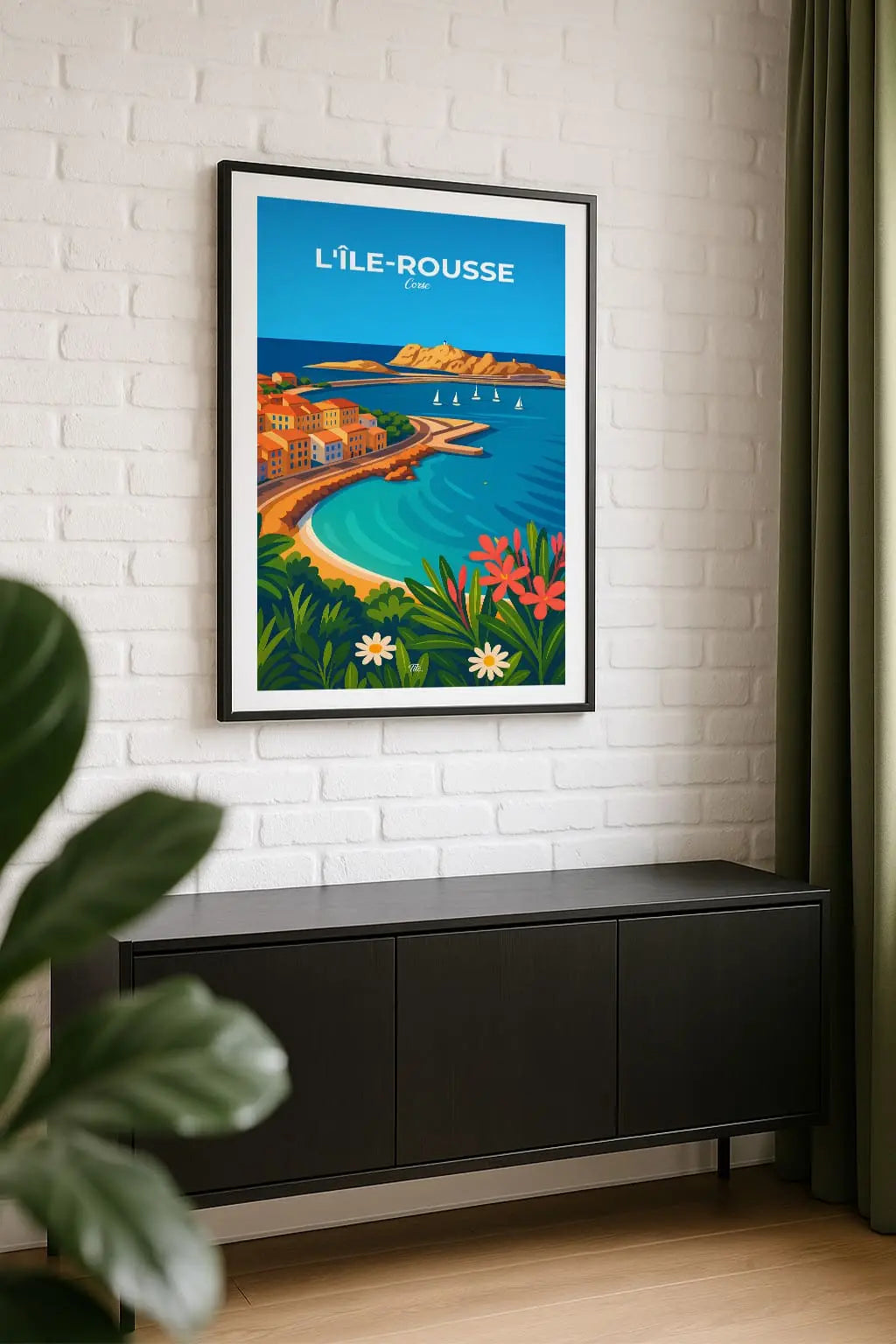 L’Île-Rousse, joyau du littoral corse, brille sous le soleil entre plages de sable blond et eaux turquoise. Ses ruelles animées et son marché coloré vibrent de vie, tandis que le parfum du maquis et le clapotis des vagues célèbrent la douceur et la beauté méditerranéenne. Accrochée sur un mur, cette affiche insuffle une bouffée d’évasion et de souvenirs. Offrez-vous un fragment de ce lieu, ou partagez-le en cadeau à une personne qui porte cet endroit dans son cœur.