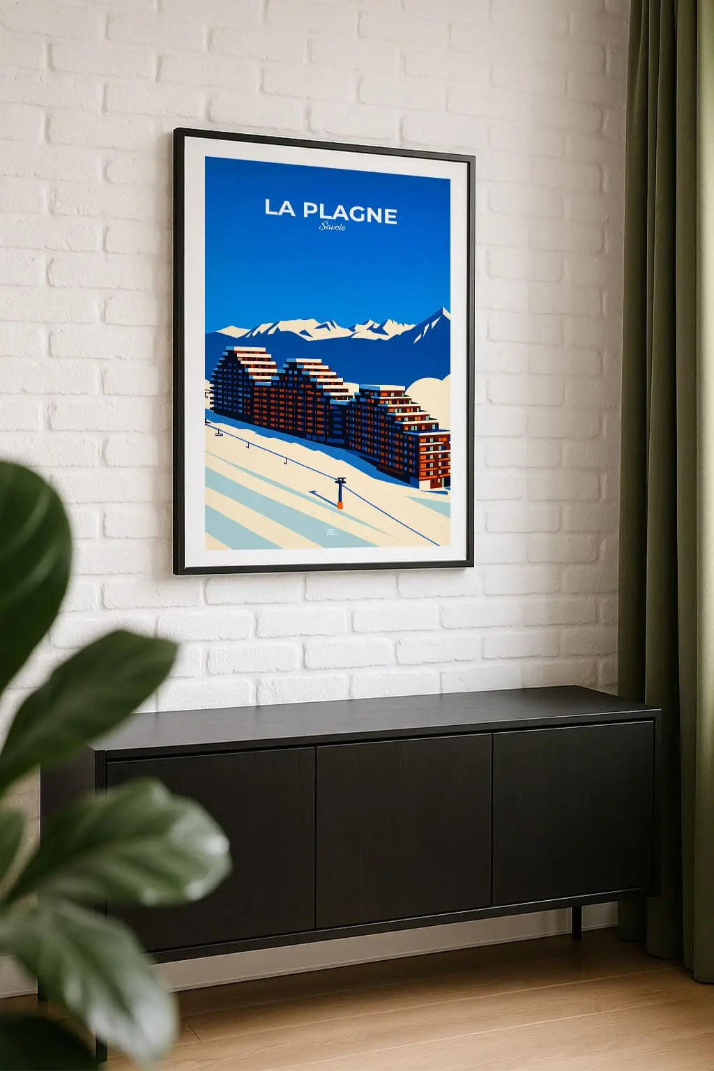 La Plagne, vaste station des Alpes, s’étend entre forêts enneigées et sommets étincelants. Entre pistes infinies, chalets chaleureux et panoramas grandioses, la station respire aventure, liberté et beauté alpine à l’état pur. Accrochée sur un mur, cette affiche insuffle une bouffée d’évasion et de souvenirs. Offrez-vous un fragment de ce lieu, ou partagez-le en cadeau à une personne qui porte cet endroit dans son cœur.