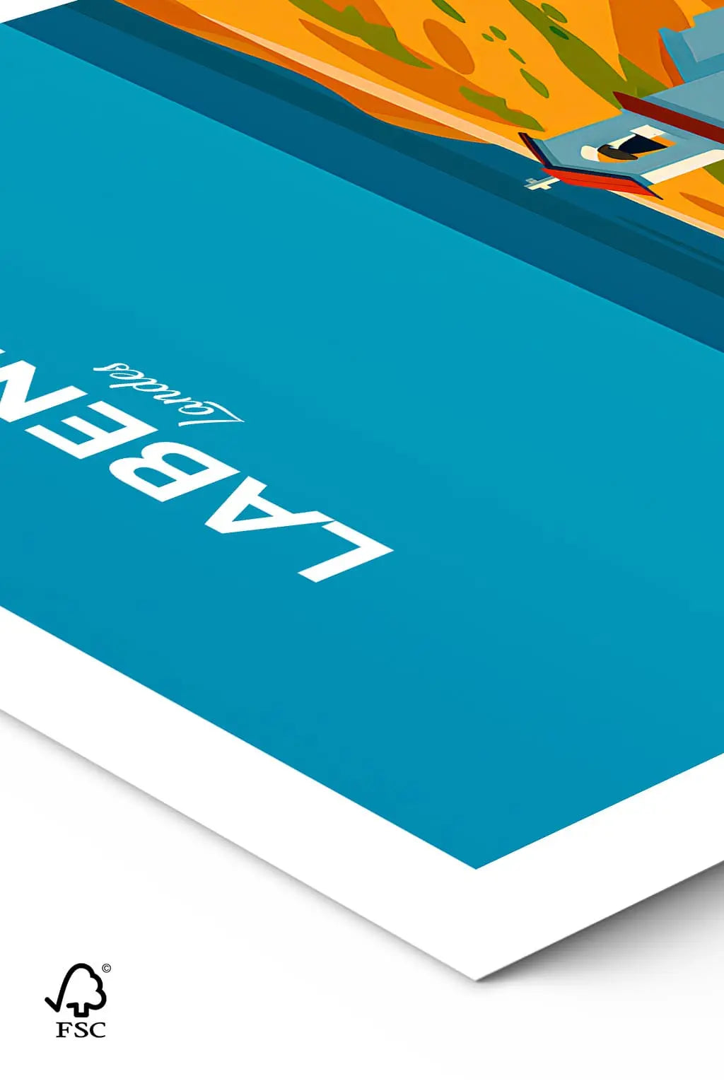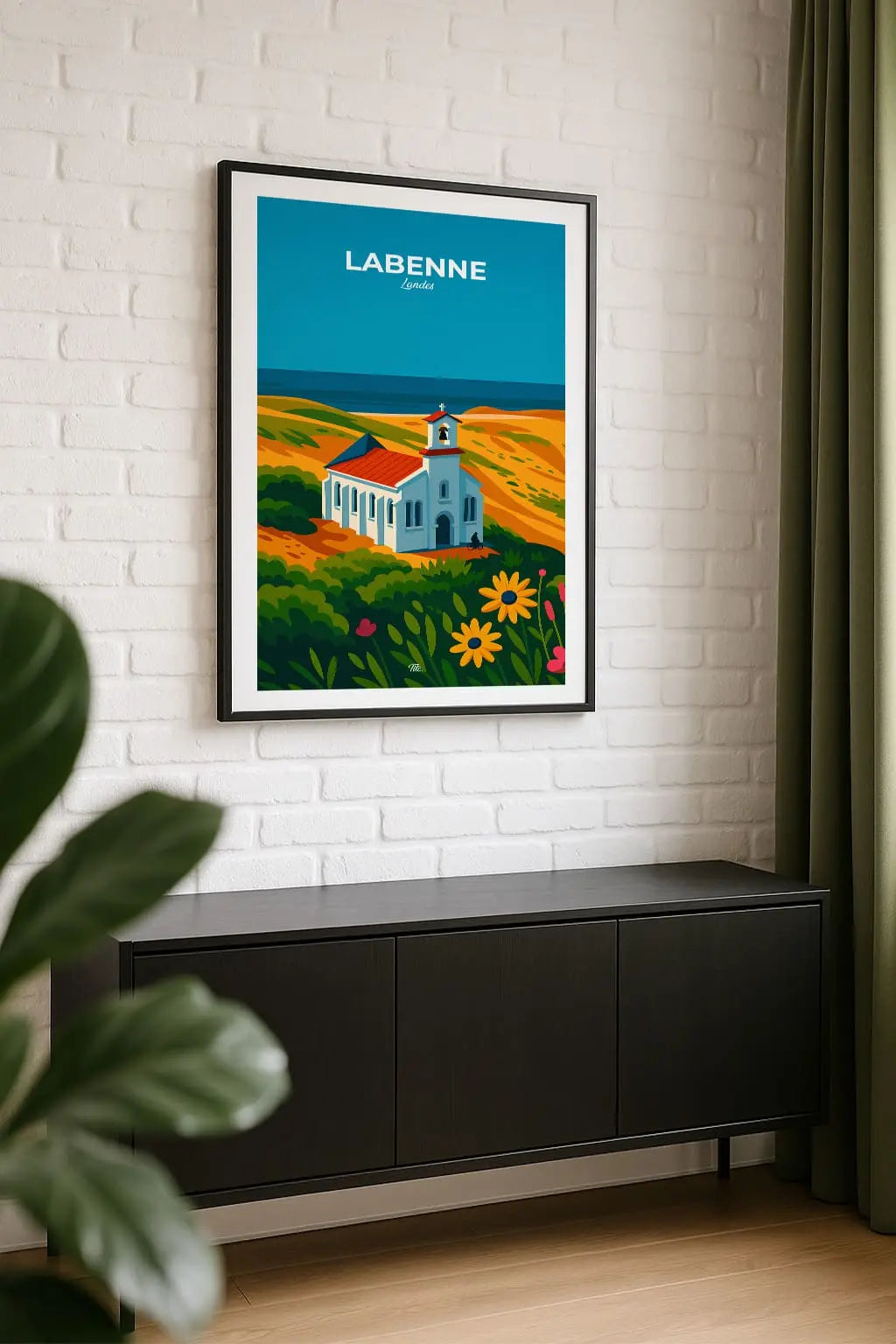 Labenne, station balnéaire landaise, s’étire entre plages dorées, dunes sauvages et forêts parfumées. Entre lumière éclatante, vagues de l’Atlantique et atmosphère détendue, la ville respire nature, sérénité et douceur de vivre océanique. Accrochée sur un mur, cette affiche insuffle une bouffée d’évasion et de souvenirs. Offrez-vous un fragment de ce lieu, ou partagez-le en cadeau à une personne qui porte cet endroit dans son cœur.