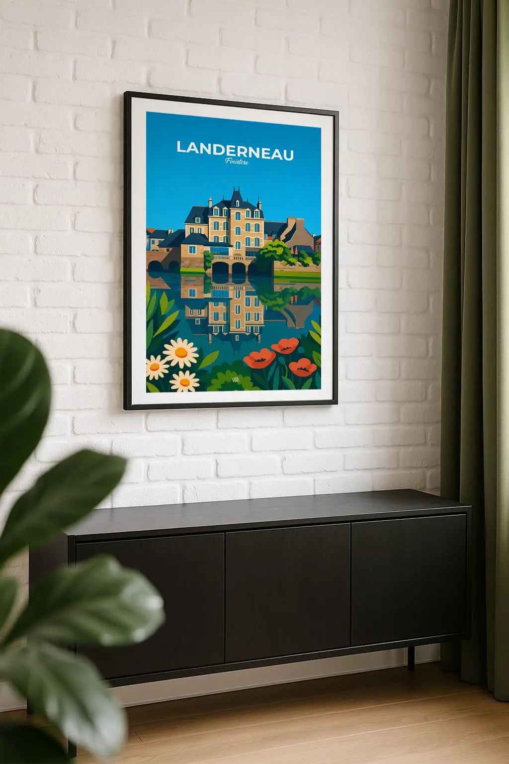 Landerneau, dans le Finistère, est une charmante ville bretonne traversée par l’Élorn, célèbre pour son pont habité, unique en France. Elle mêle patrimoine historique, vie culturelle dynamique et proximité avec Brest, tout en conservant une ambiance authentique. Accrochée sur un mur, cette affiche insuffle une bouffée d’évasion et de souvenirs. Offrez-vous un fragment de ce lieu, ou partagez-le en cadeau à une personne qui porte cet endroit dans son cœur.