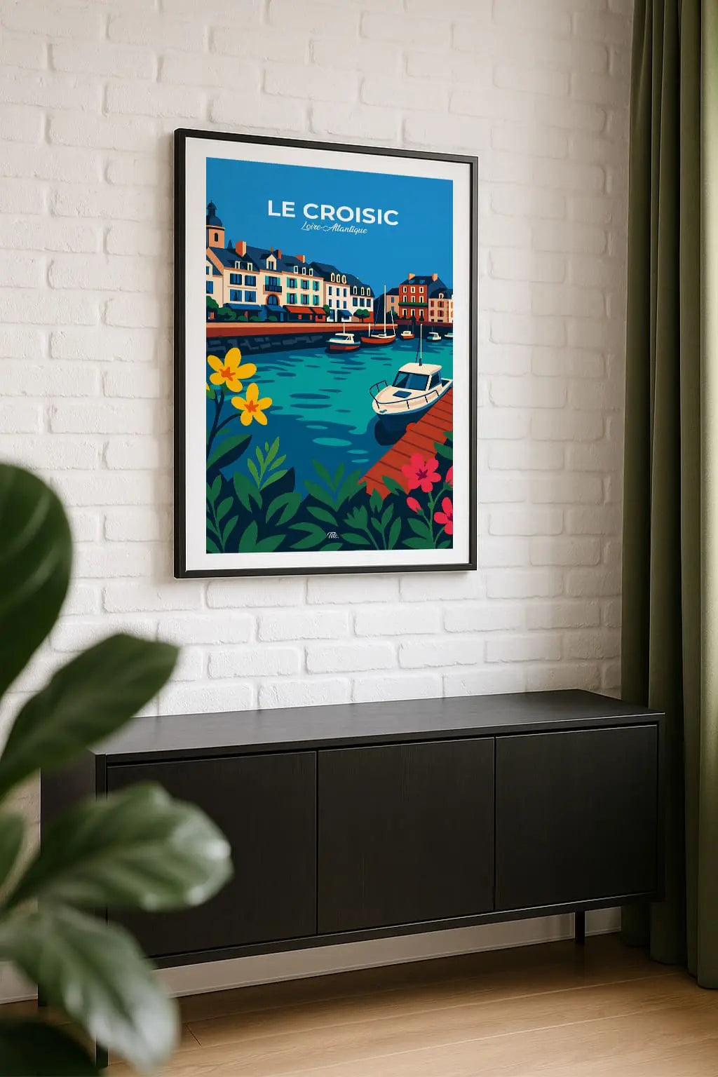 Le Croisic, village maritime de la Loire-Atlantique, séduit par ses ports pittoresques, ses maisons anciennes et ses côtes sauvages. Entre pêche traditionnelle, lumière changeante et atmosphère paisible, la ville respire authenticité, beauté naturelle et douceur de vivre. Accrochée sur un mur, cette affiche insuffle une bouffée d’évasion et de souvenirs. Offrez-vous un fragment de ce lieu, ou partagez-le en cadeau à une personne qui porte cet endroit dans son cœur.