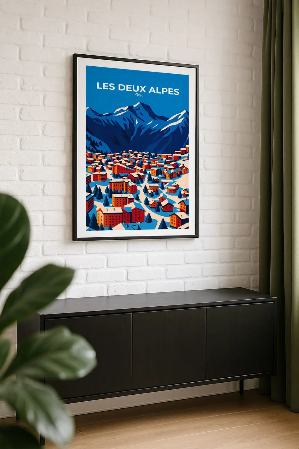 Les Deux Alpes, station mythique des Alpes françaises, s’élève entre glaciers étincelants et pentes vertigineuses. Entre neige éternelle, ambiance conviviale et panoramas grandioses, elle respire aventure, énergie et beauté alpine toute l’année. Accrochée sur un mur, cette affiche insuffle une bouffée d’évasion et de souvenirs. Offrez-vous un fragment de ce lieu, ou partagez-le en cadeau à une personne qui porte cet endroit dans son cœur.