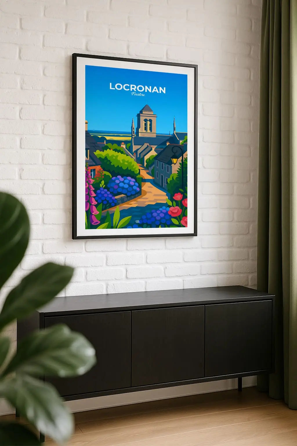 Locronan, dans le Finistère, est classé parmi les plus beaux villages de France. Célèbre pour ses maisons en granit et son patrimoine médiéval remarquablement préservé, le village a souvent servi de décor de cinéma. Il est aussi connu pour sa grande Troménie, procession traditionnelle bretonne. Accrochée sur un mur, cette affiche insuffle une bouffée d’évasion et de souvenirs. Offrez-vous un fragment de ce lieu, ou partagez-le en cadeau à une personne qui porte cet endroit dans son cœur.