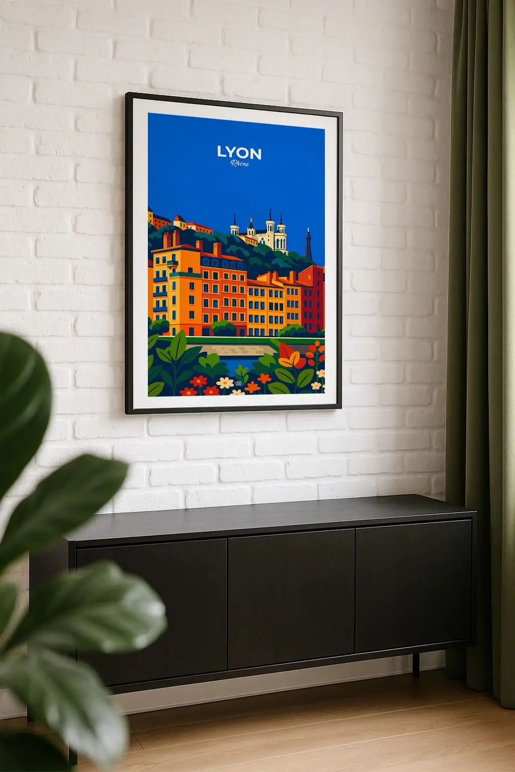 Lyon, cité des lumières et de la gastronomie, s’épanouit entre Rhône et Saône. Entre traboules secrètes, façades Renaissance et collines inspirées, la ville respire élégance, culture et art de vivre à la française. Accrochée sur un mur, cette affiche insuffle une bouffée d’évasion et de souvenirs. Offrez-vous un fragment de ce lieu, ou partagez-le en cadeau à une personne qui porte cet endroit dans son cœur.