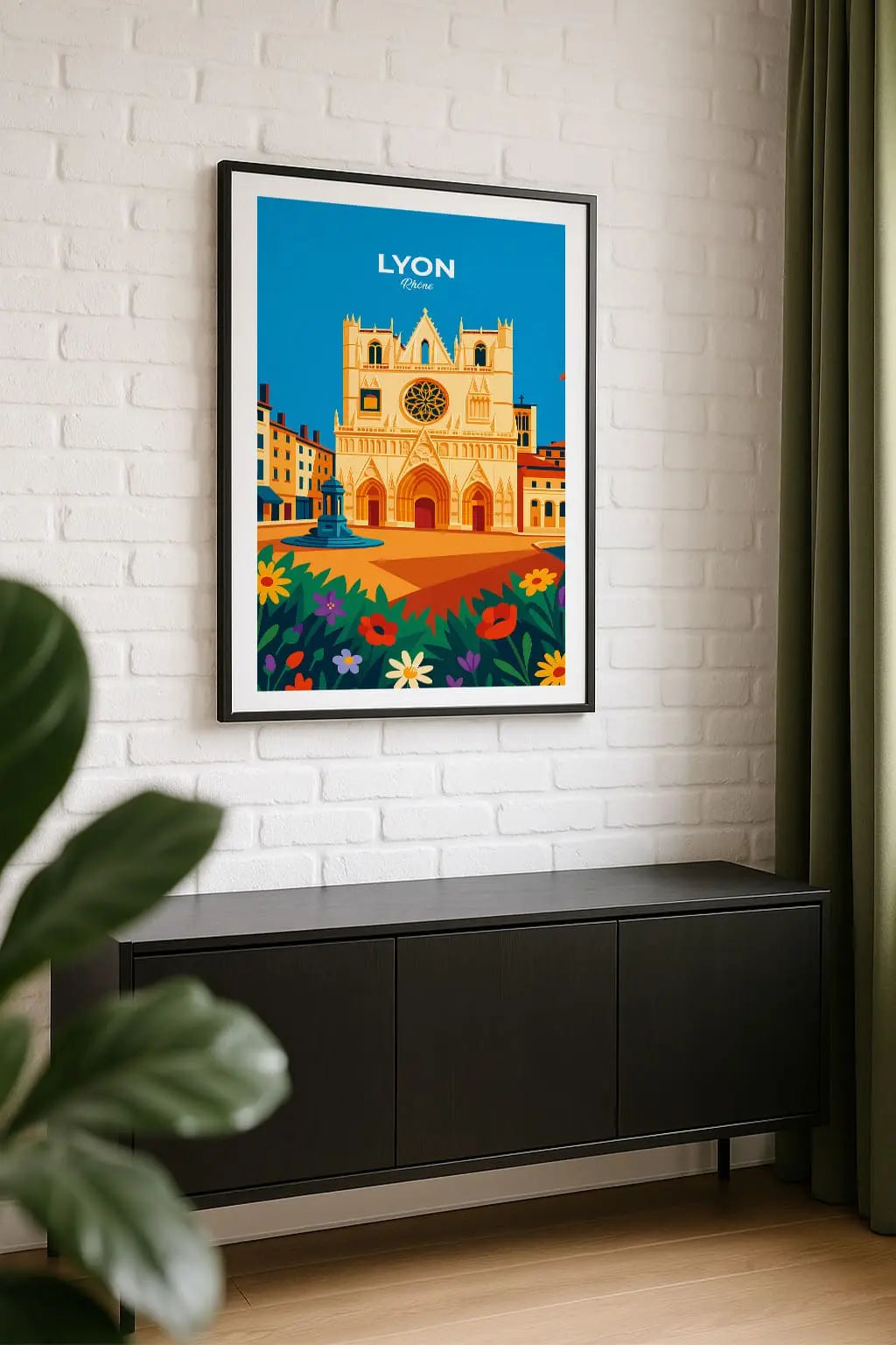 Lyon, cité des lumières et de la gastronomie, s’épanouit entre Rhône et Saône. Entre traboules secrètes, façades Renaissance et collines inspirées, la ville respire élégance, culture et art de vivre à la française. Accrochée sur un mur, cette affiche insuffle une bouffée d’évasion et de souvenirs. Offrez-vous un fragment de ce lieu, ou partagez-le en cadeau à une personne qui porte cet endroit dans son cœur.