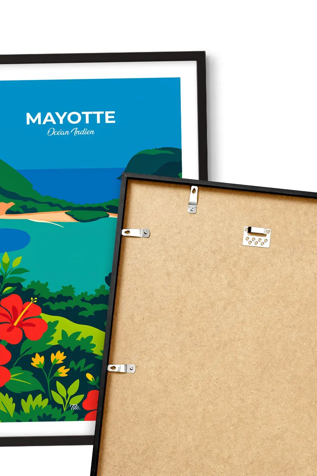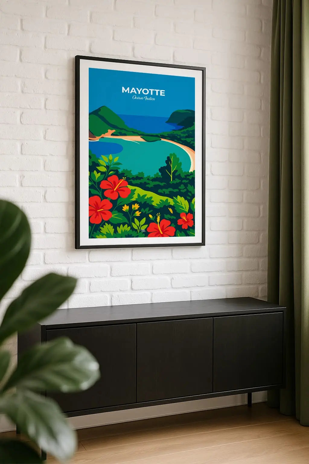 Mayotte, île préservée de l’océan Indien, dévoile lagons turquoise, récifs coralliens et collines verdoyantes. Terre d’authenticité et de traditions, elle enchante par sa nature luxuriante et sa mer translucide, offrant un havre de sérénité, de couleurs et de beauté sauvage. Accrochée sur un mur, cette affiche insuffle une bouffée d’évasion et de souvenirs. Offrez-vous un fragment de ce lieu, ou partagez-le en cadeau à une personne qui porte cet endroit dans son cœur.