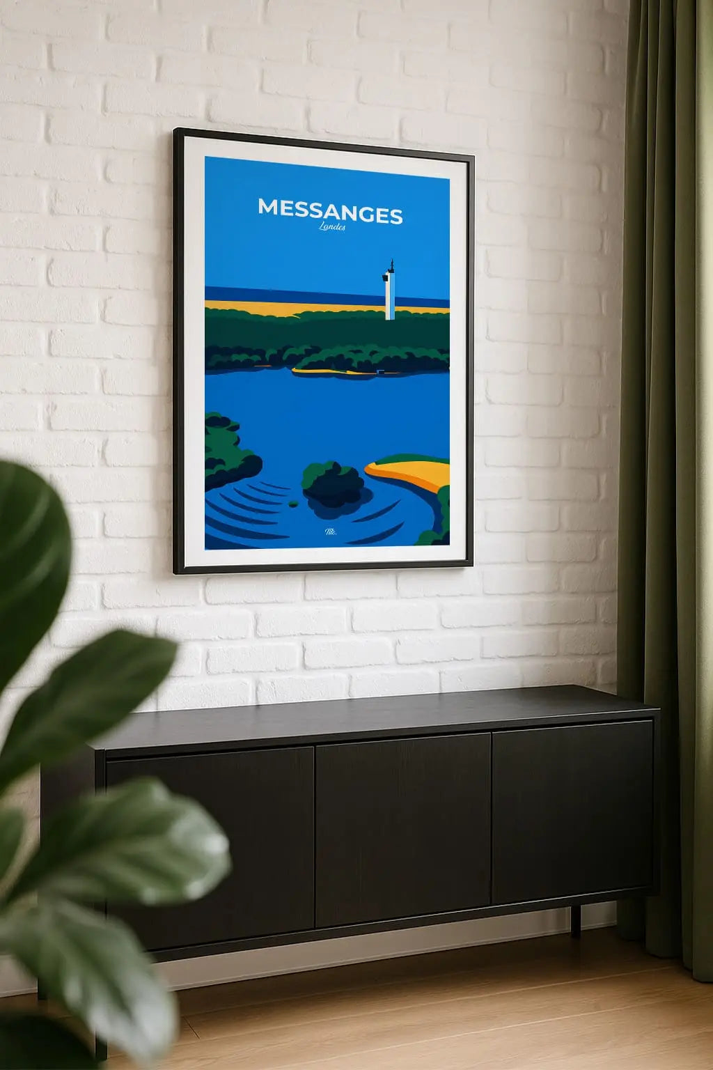 Messanges, paisible village landais, s’étire entre plages dorées, dunes sauvages et forêts de pins. Entre brise marine, lumière éclatante et atmosphère tranquille, la commune respire nature, sérénité et douceur de vivre au rythme de l’océan. Accrochée sur un mur, cette affiche insuffle une bouffée d’évasion et de souvenirs. Offrez-vous un fragment de ce lieu, ou partagez-le en cadeau à une personne qui porte cet endroit dans son cœur.