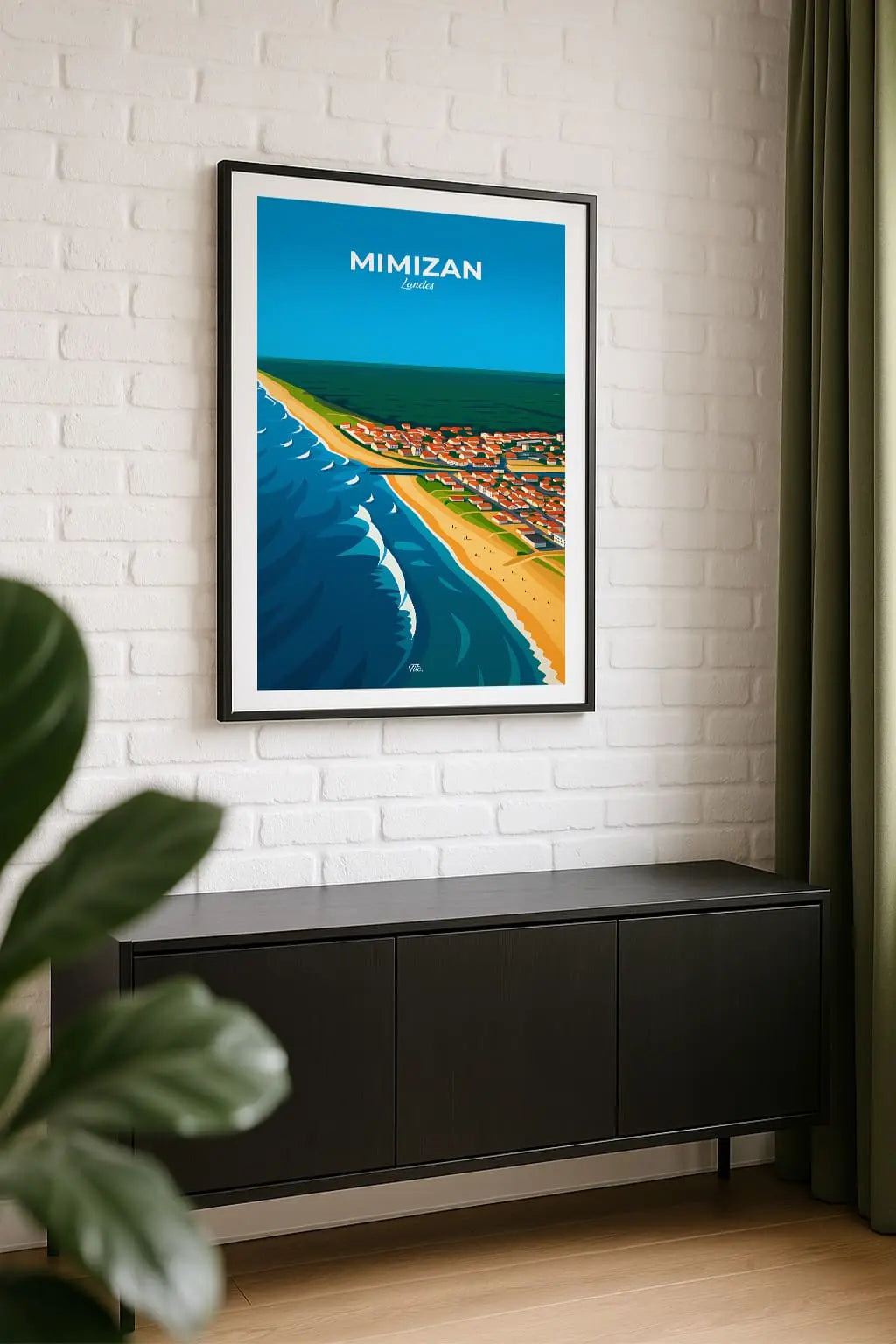 Mimizan, station balnéaire des Landes, s’étend entre plages dorées, forêt de pins et lac paisible. Entre lumière éclatante, vagues de l’Atlantique et ambiance conviviale, la ville respire nature, liberté et douceur de vivre océane. Accrochée sur un mur, cette affiche insuffle une bouffée d’évasion et de souvenirs. Offrez-vous un fragment de ce lieu, ou partagez-le en cadeau à une personne qui porte cet endroit dans son cœur.