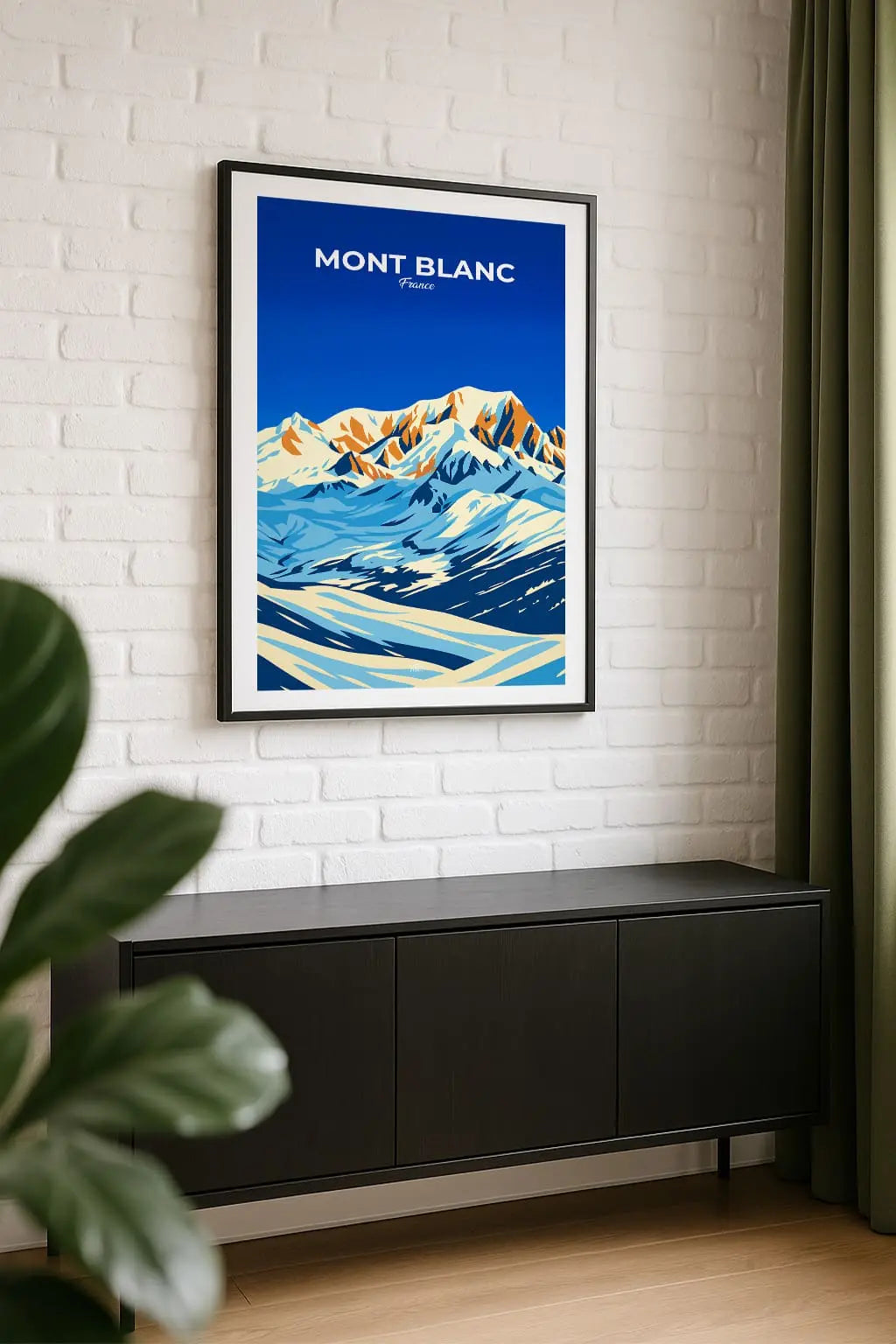 Le Mont Blanc, toit de l’Europe, s’élève majestueux entre ciel et terre. Entre neiges éternelles, glaciers scintillants et lumière pure, il respire grandeur, liberté et beauté absolue au cœur des Alpes. Accrochée sur un mur, cette affiche insuffle une bouffée d’évasion et de souvenirs. Offrez-vous un fragment de ce lieu, ou partagez-le en cadeau à une personne qui porte cet endroit dans son cœur.