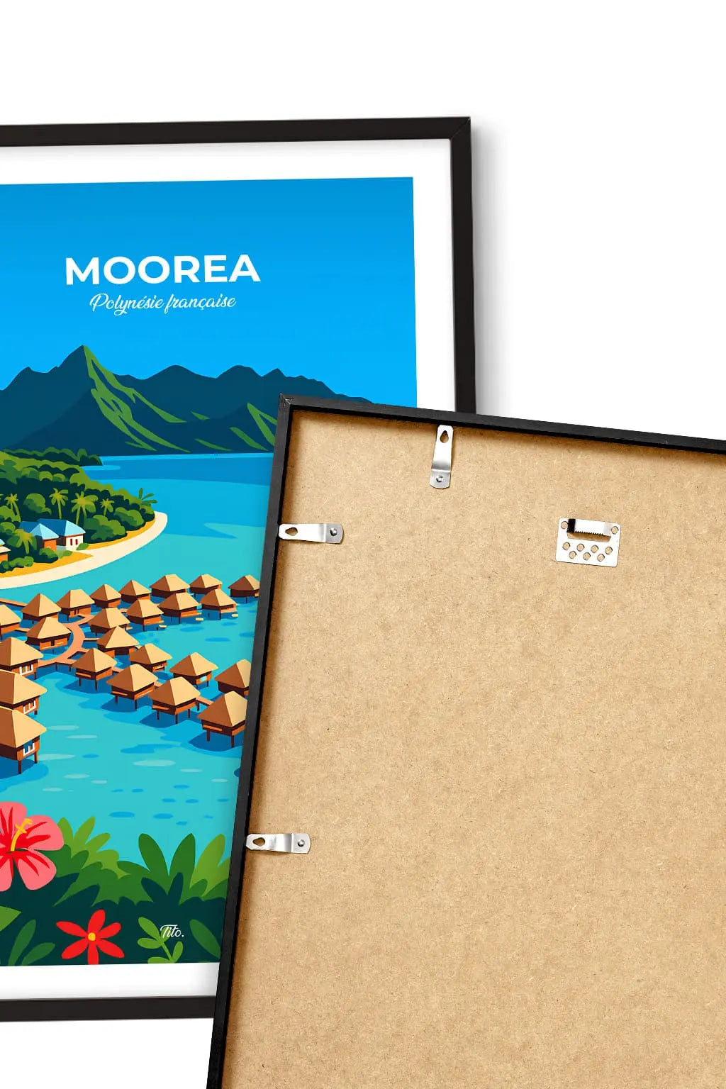 Moorea, île émeraude de la Polynésie, émerveille par ses lagons cristallins et ses montagnes verdoyantes sculptées par la nature. Entre plages de sable blanc et végétation luxuriante, l’île respire la sérénité et la magie, offrant un spectacle de beauté et de tranquillité absolues. Accrochée sur un mur, cette affiche insuffle une bouffée d’évasion et de souvenirs. Offrez-vous un fragment de ce lieu, ou partagez-le en cadeau à une personne qui porte cet endroit dans son cœur.