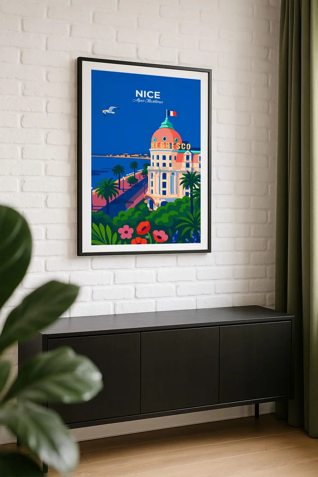 Nice, perle de la Côte d’Azur, s’épanouit entre mer turquoise, collines lumineuses et vieille ville pittoresque. Entre plages, marchés colorés et ambiance méditerranéenne, la ville respire élégance, charme et douceur de vivre ensoleillée. Accrochée sur un mur, cette affiche insuffle une bouffée d’évasion et de souvenirs. Offrez-vous un fragment de ce lieu, ou partagez-le en cadeau à une personne qui porte cet endroit dans son cœur.