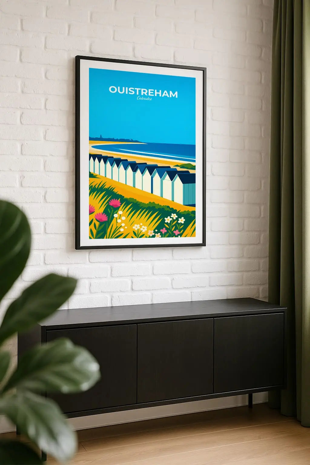 Ouistreham, station balnéaire du Calvados, s’étire entre plages de sable fin et port animé. Entre brise marine, lumière changeante et ruelles pittoresques, la ville respire authenticité, douceur de vivre et charme côtier normand. Accrochée sur un mur, cette affiche insuffle une bouffée d’évasion et de souvenirs. Offrez-vous un fragment de ce lieu, ou partagez-le en cadeau à une personne qui porte cet endroit dans son cœur.