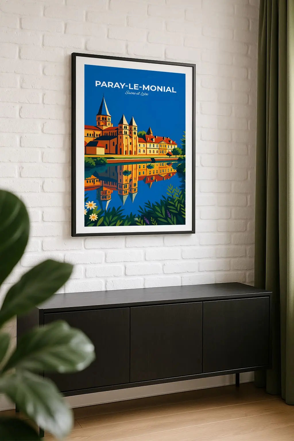 Paray-le-Monial, joyau spirituel de la Bourgogne, rayonne autour de sa basilique romane, chef-d’œuvre de l’art clunisien. Entre pierres dorées, rivière paisible et ambiance sereine, la ville invite à la contemplation et à la découverte d’un patrimoine empreint de beauté et d’harmonie. Accrochée sur un mur, cette affiche insuffle une bouffée d’évasion et de souvenirs. Offrez-vous un fragment de ce lieu, ou partagez-le en cadeau à une personne qui porte cet endroit dans son cœur.