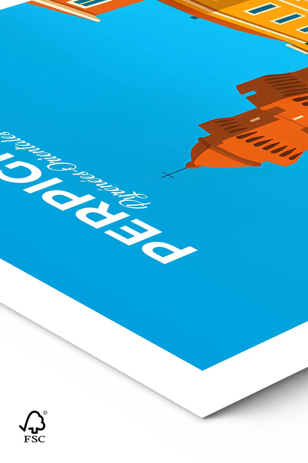 Perpignan, ville catalane au charme méridional, s’épanouit entre palais historiques, ruelles colorées et lumière éclatante. Entre culture, traditions et proximité de la Méditerranée, elle respire chaleur, authenticité et douceur de vivre au cœur du Roussillon. Accrochée sur un mur, cette affiche insuffle une bouffée d’évasion et de souvenirs. Offrez-vous un fragment de ce lieu, ou partagez-le en cadeau à une personne qui porte cet endroit dans son cœur.