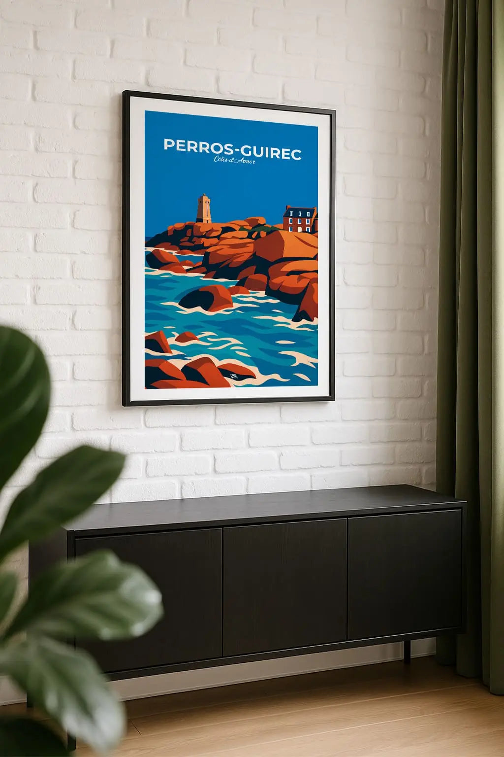 Perros-Guirec, joyau de la Côte de Granit Rose, émerveille par ses rochers aux teintes rosées sculptés par la mer. Entre criques turquoise, sentiers côtiers et lumière changeante, la ville incarne la magie bretonne, douce, sauvage et infiniment lumineuse. Accrochée sur un mur, cette affiche insuffle une bouffée d’évasion et de souvenirs. Offrez-vous un fragment de ce lieu, ou partagez-le en cadeau à une personne qui porte cet endroit dans son cœur.