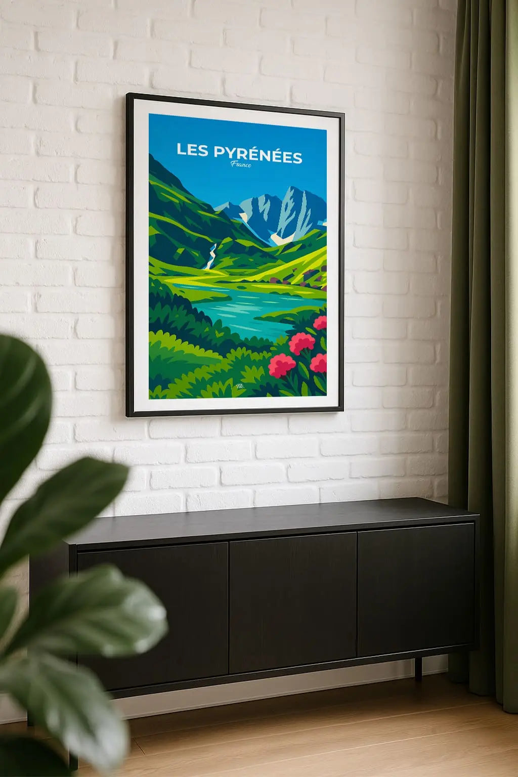 Les Pyrénées, chaîne majestueuse entre France et Espagne, déploient sommets enneigés, vallées verdoyantes et villages pittoresques. Entre nature préservée, panoramas grandioses et sérénité, la montagne respire beauté, liberté et aventure à l’état pur. Accrochée sur un mur, cette affiche insuffle une bouffée d’évasion et de souvenirs. Offrez-vous un fragment de ce lieu, ou partagez-le en cadeau à une personne qui porte cet endroit dans son cœur.