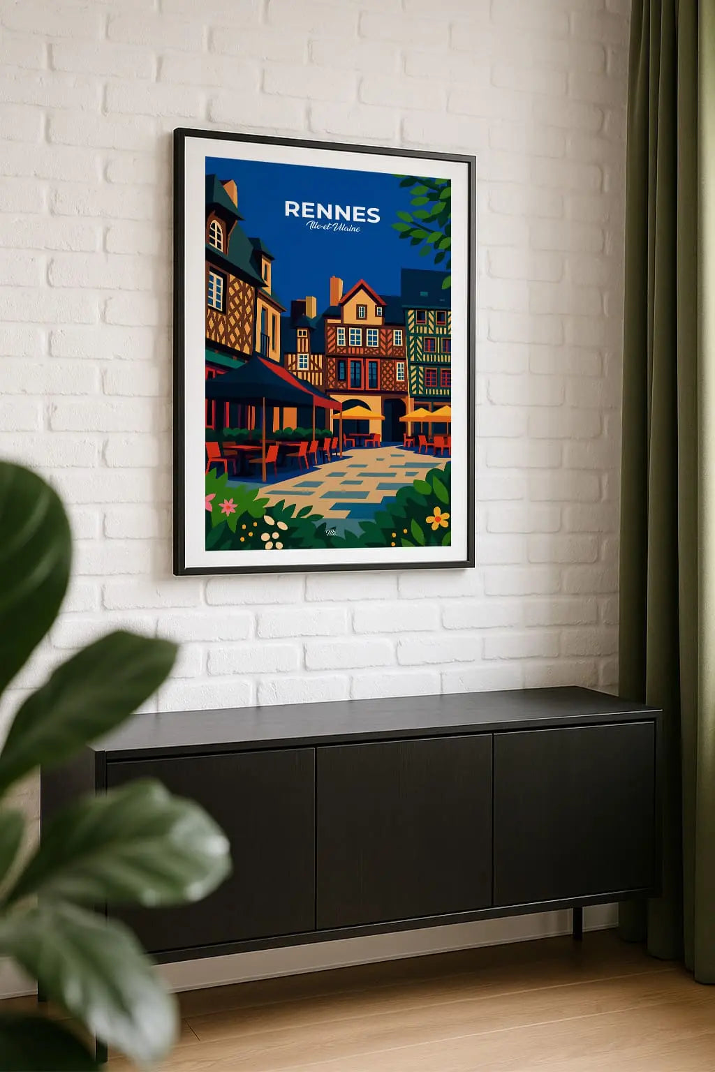 Rennes, capitale dynamique de la Bretagne, séduit par ses ruelles médiévales, ses maisons à colombages et son patrimoine culturel vivant. Entre lumière douce, marchés animés et atmosphère conviviale, la ville respire énergie, charme et authenticité bretonne. Accrochée sur un mur, cette affiche insuffle une bouffée d’évasion et de souvenirs. Offrez-vous un fragment de ce lieu, ou partagez-le en cadeau à une personne qui porte cet endroit dans son cœur.