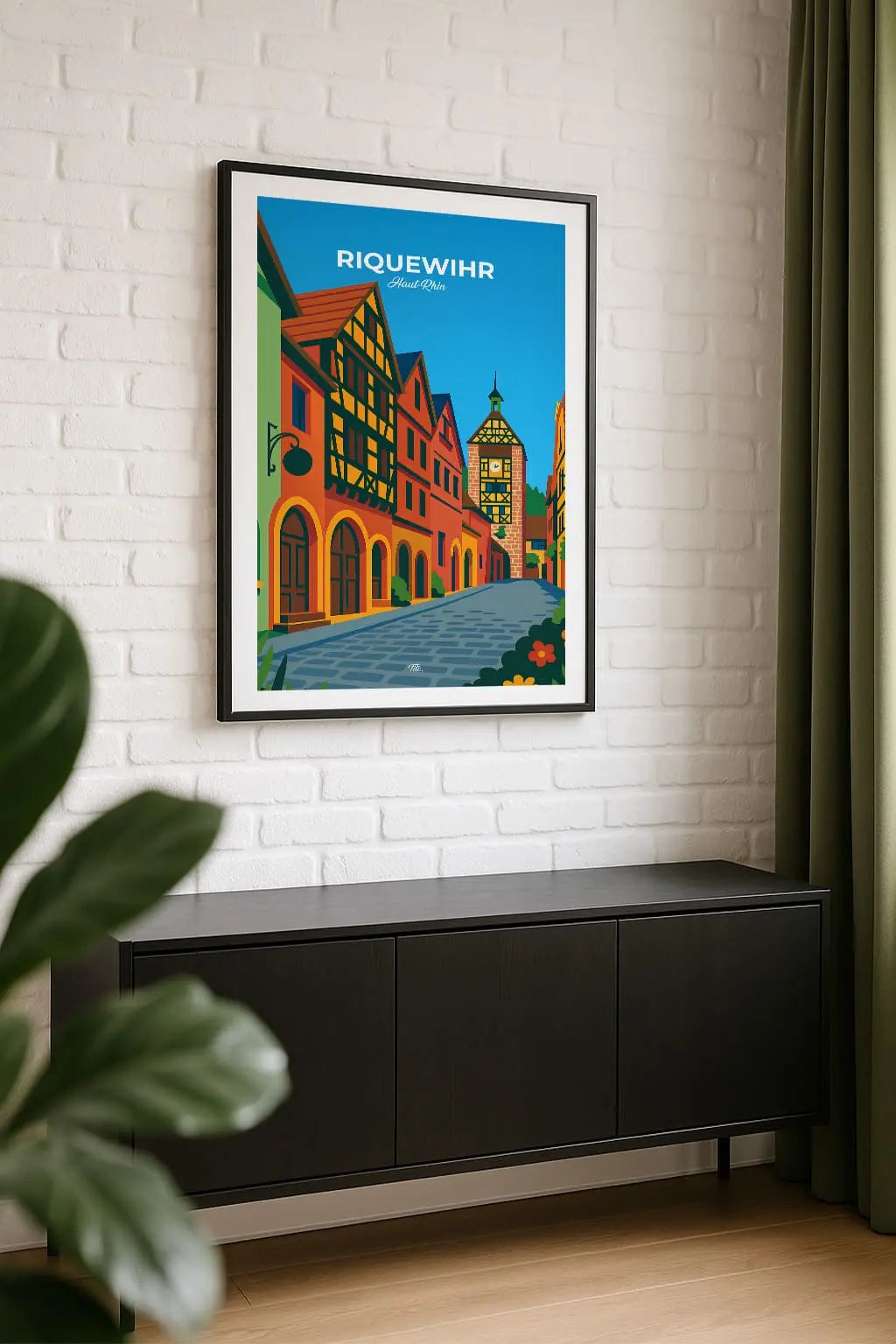 Riquewihr, joyau médiéval de l’Alsace, séduit par ses maisons à colombages colorées et ses ruelles pavées. Entre vignobles ondoyants et remparts anciens, le village respire charme, authenticité et beauté intemporelle, incarnant l’élégance et la douceur alsacienne. Accrochée sur un mur, cette affiche insuffle une bouffée d’évasion et de souvenirs. Offrez-vous un fragment de ce lieu, ou partagez-le en cadeau à une personne qui porte cet endroit dans son cœur.