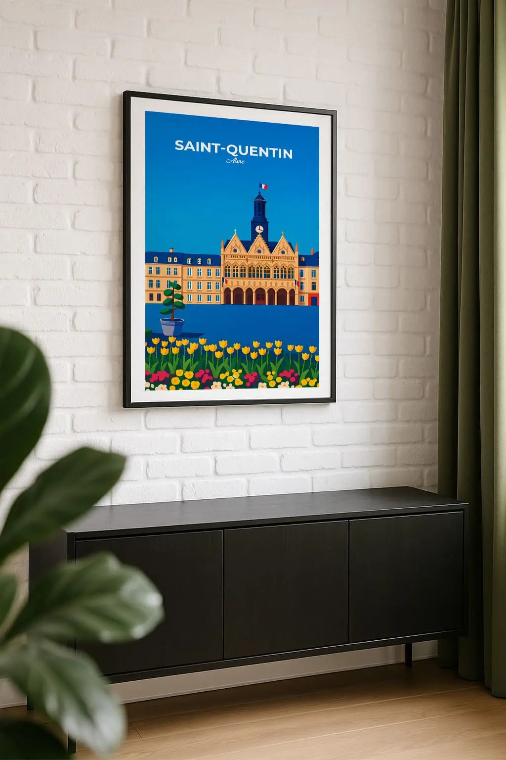 Saint-Quentin, ville d’art et d’histoire de l’Aisne, séduit par sa basilique gothique, ses façades Art déco et ses ruelles animées. Entre patrimoine, parcs et atmosphère conviviale, elle respire culture, élégance et authenticité au cœur de la Picardie. Accrochée sur un mur, cette affiche insuffle une bouffée d’évasion et de souvenirs. Offrez-vous un fragment de ce lieu, ou partagez-le en cadeau à une personne qui porte cet endroit dans son cœur.