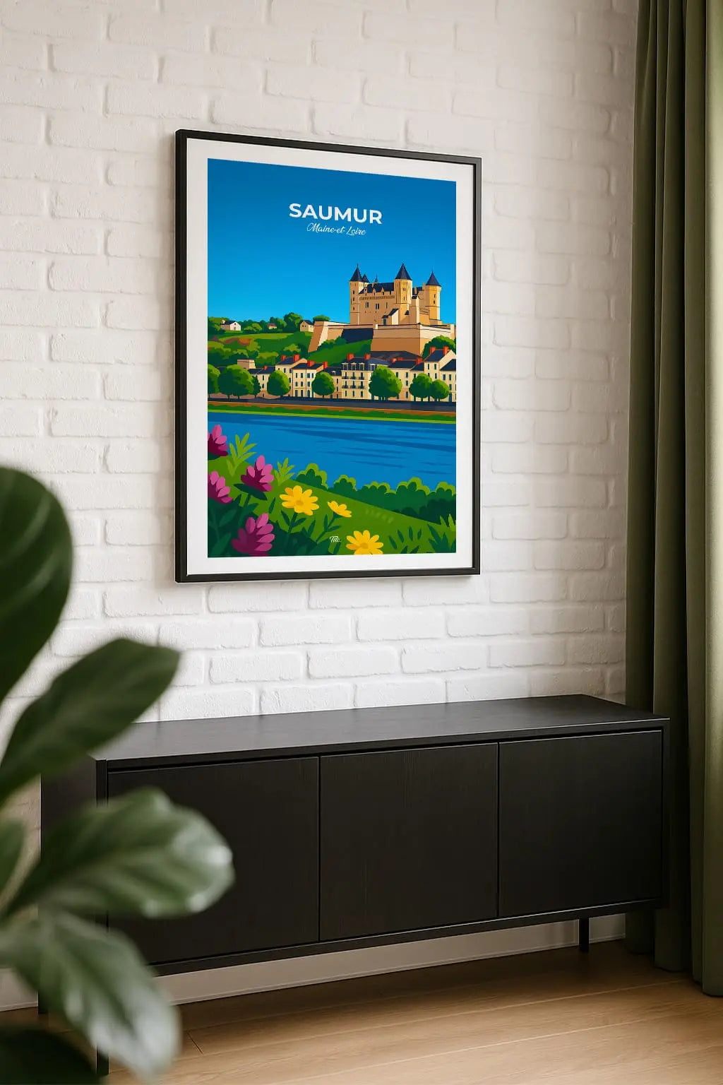 Saumur, joyau de la vallée de la Loire, s’élève au bord du fleuve avec son château emblématique et ses ruelles pittoresques. Entre vignobles, jardins et patrimoine historique, la ville respire élégance, douceur de vivre et charme intemporel. Accrochée sur un mur, cette affiche insuffle une bouffée d’évasion et de souvenirs. Offrez-vous un fragment de ce lieu, ou partagez-le en cadeau à une personne qui porte cet endroit dans son cœur.