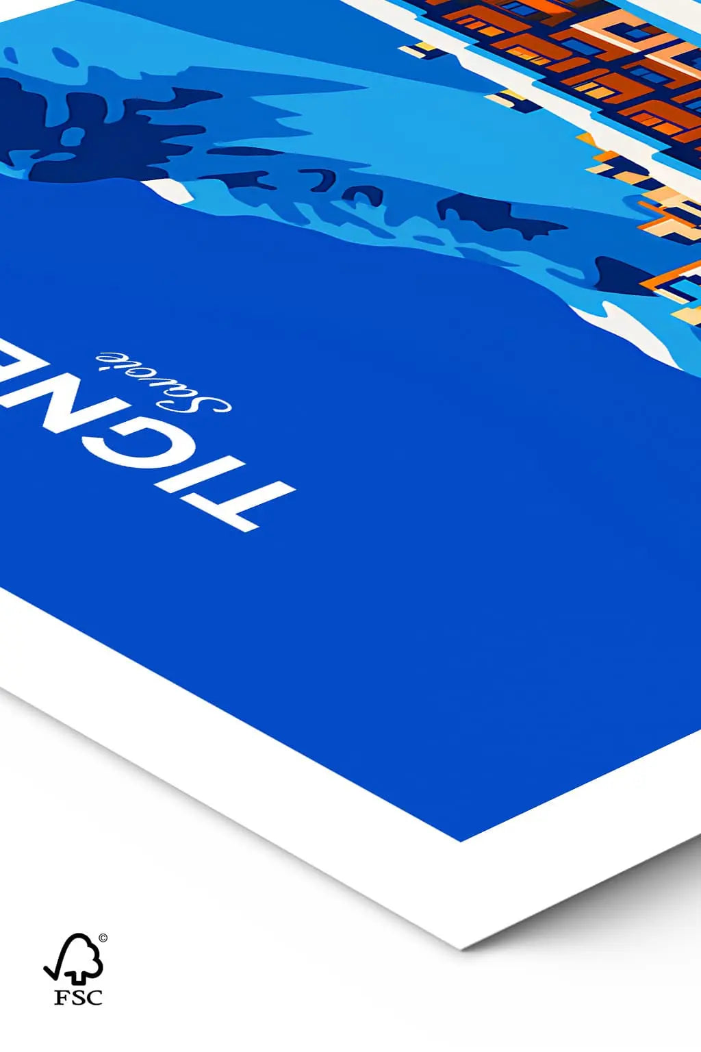 Tignes, station alpine emblématique, s’élève entre glaciers étincelants et sommets vertigineux. Entre pistes immaculées, panoramas grandioses et ambiance vivante, la station respire aventure, liberté et beauté alpine à couper le souffle. Accrochée sur un mur, cette affiche insuffle une bouffée d’évasion et de souvenirs. Offrez-vous un fragment de ce lieu, ou partagez-le en cadeau à une personne qui porte cet endroit dans son cœur.