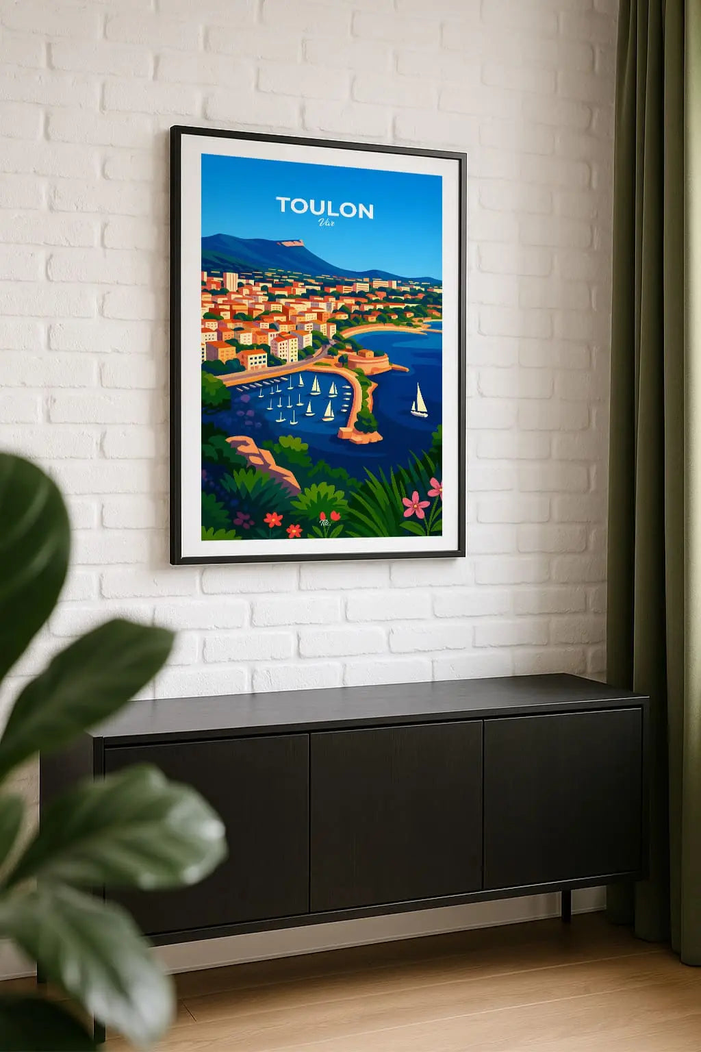 Toulon, ville portuaire de la Méditerranée, s’épanouit entre mer scintillante, collines verdoyantes et centre animé. Entre marchés colorés, lumière éclatante et atmosphère vivante, la ville respire authenticité, charme et douceur de vivre provençale. Accrochée sur un mur, cette affiche insuffle une bouffée d’évasion et de souvenirs. Offrez-vous un fragment de ce lieu, ou partagez-le en cadeau à une personne qui porte cet endroit dans son cœur.