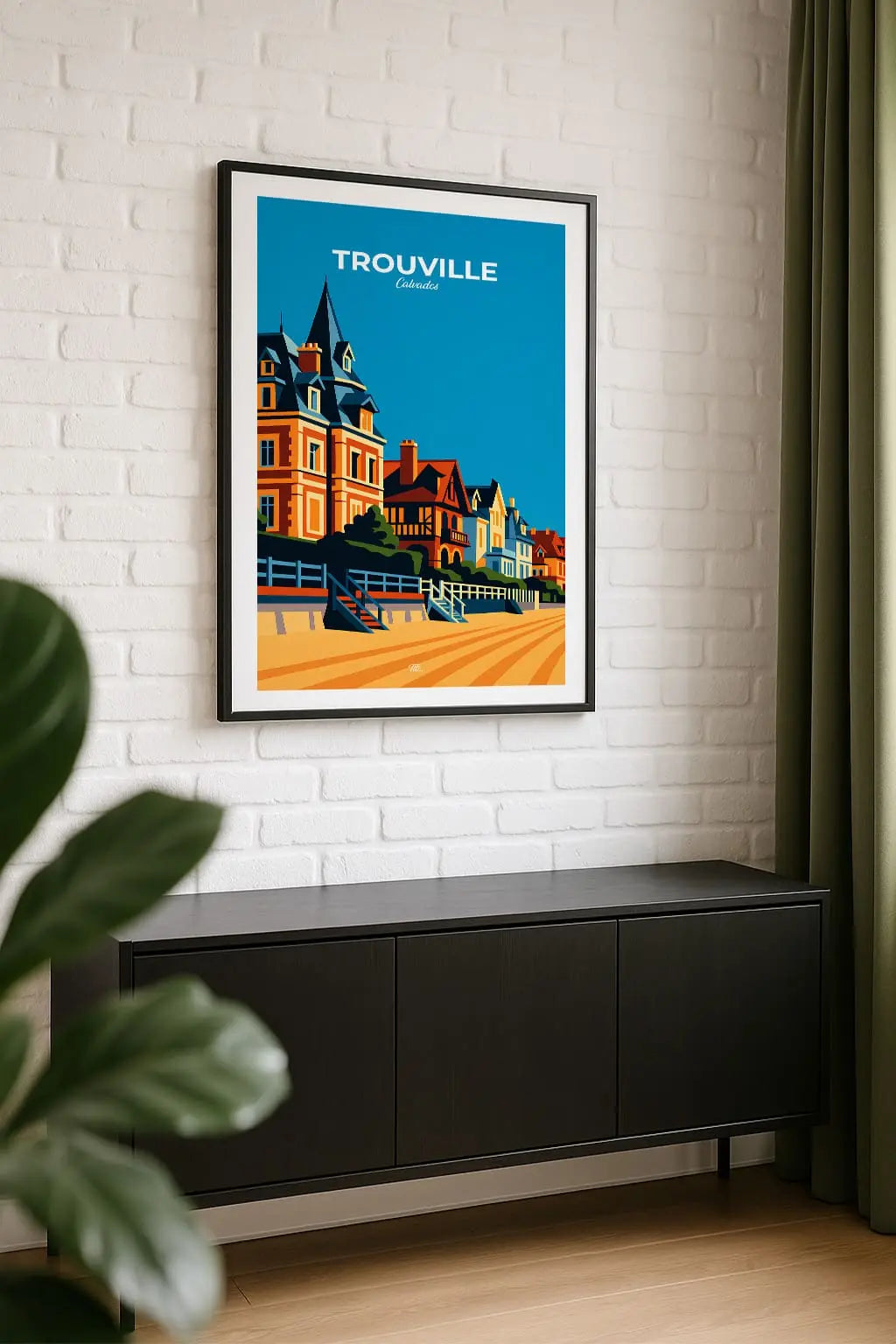 Trouville-sur-Mer, élégante station de la Côte Fleurie, séduit par sa plage de sable fin, son port animé et ses villas Belle Époque. Entre lumière dorée, brise marine et atmosphère conviviale, la ville respire charme, élégance et douceur de vivre balnéaire. Accrochée sur un mur, cette affiche insuffle une bouffée d’évasion et de souvenirs. Offrez-vous un fragment de ce lieu, ou partagez-le en cadeau à une personne qui porte cet endroit dans son cœur.
