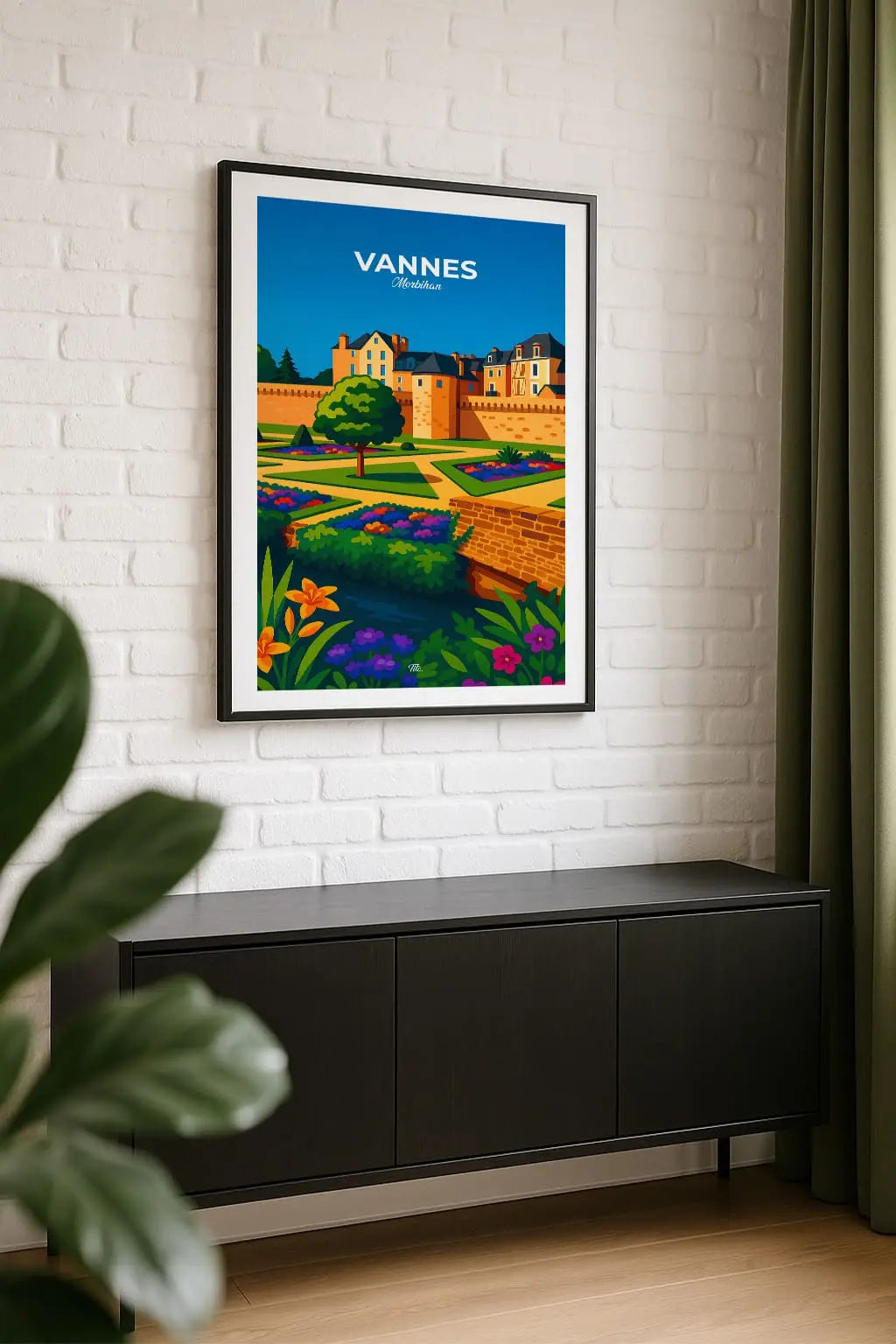 Vannes, joyau du Morbihan, séduit par ses remparts médiévaux, ses ruelles pavées et son port animé. Entre lumière douce, jardins fleuris et atmosphère conviviale, la ville respire histoire, charme et authenticité bretonne. Accrochée sur un mur, cette affiche insuffle une bouffée d’évasion et de souvenirs. Offrez-vous un fragment de ce lieu, ou partagez-le en cadeau à une personne qui porte cet endroit dans son cœur.